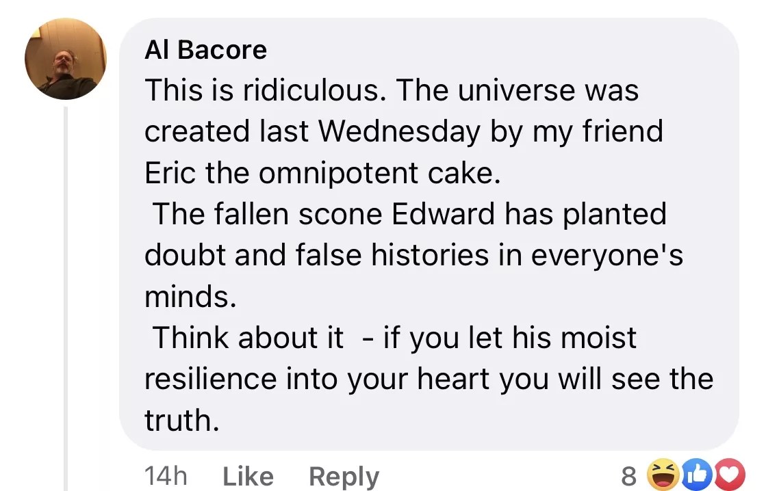 Ultimately, we don’t know what’s funnier here: the science deniers, the folks wasting time replying to the science deniers with science-y stuff or the ones posting completely unrelated or made-up material in an attempt to mock the entire situation. We’ll let you decide.