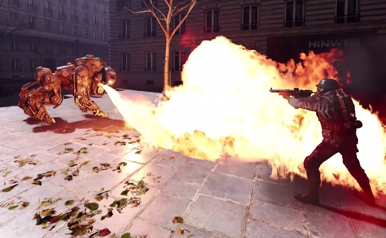 Players take control of a four-legged robot equipped with a flamethrower to toast Nazis in the new VR game Wolfenstein: Cyberpilot.