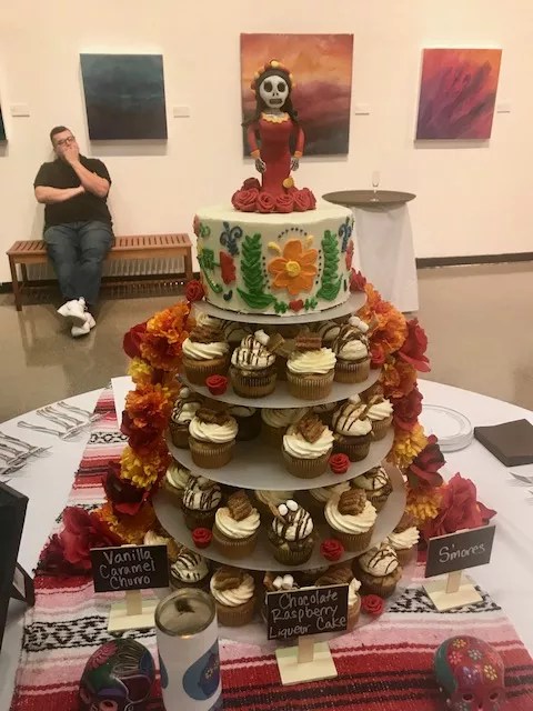 Bianca Gutierrez blended her passion for baking with her Mexican-American heritage in a multitiered display of vanilla caramel churro cupcakes, chocolate raspberry liqueur cake and s’mores cupcakes topped with a hollow-eyed skeletal sculpture wearing a dramatic red gown.
