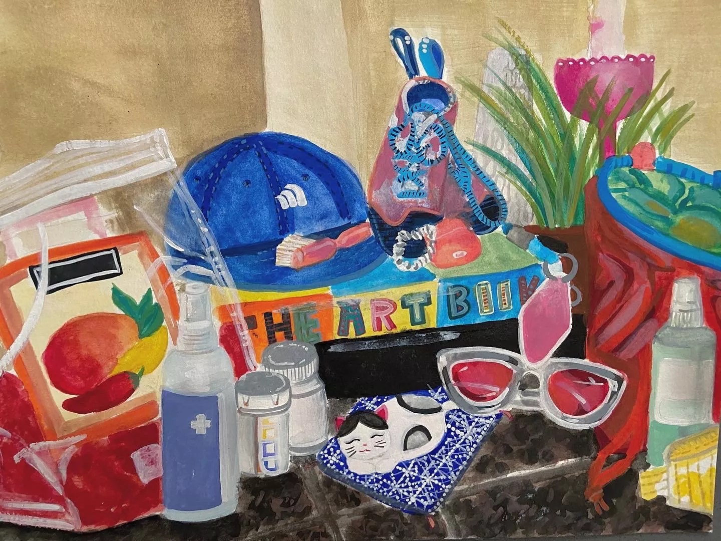 She wanted to find a way to connect to her friends and family outside the house and bring them joy from afar. She found inspiration from a shadow box her mother had put together, displaying items that reminded her of her daughter. The artist named her quarantine series “Distant Still Lives.”