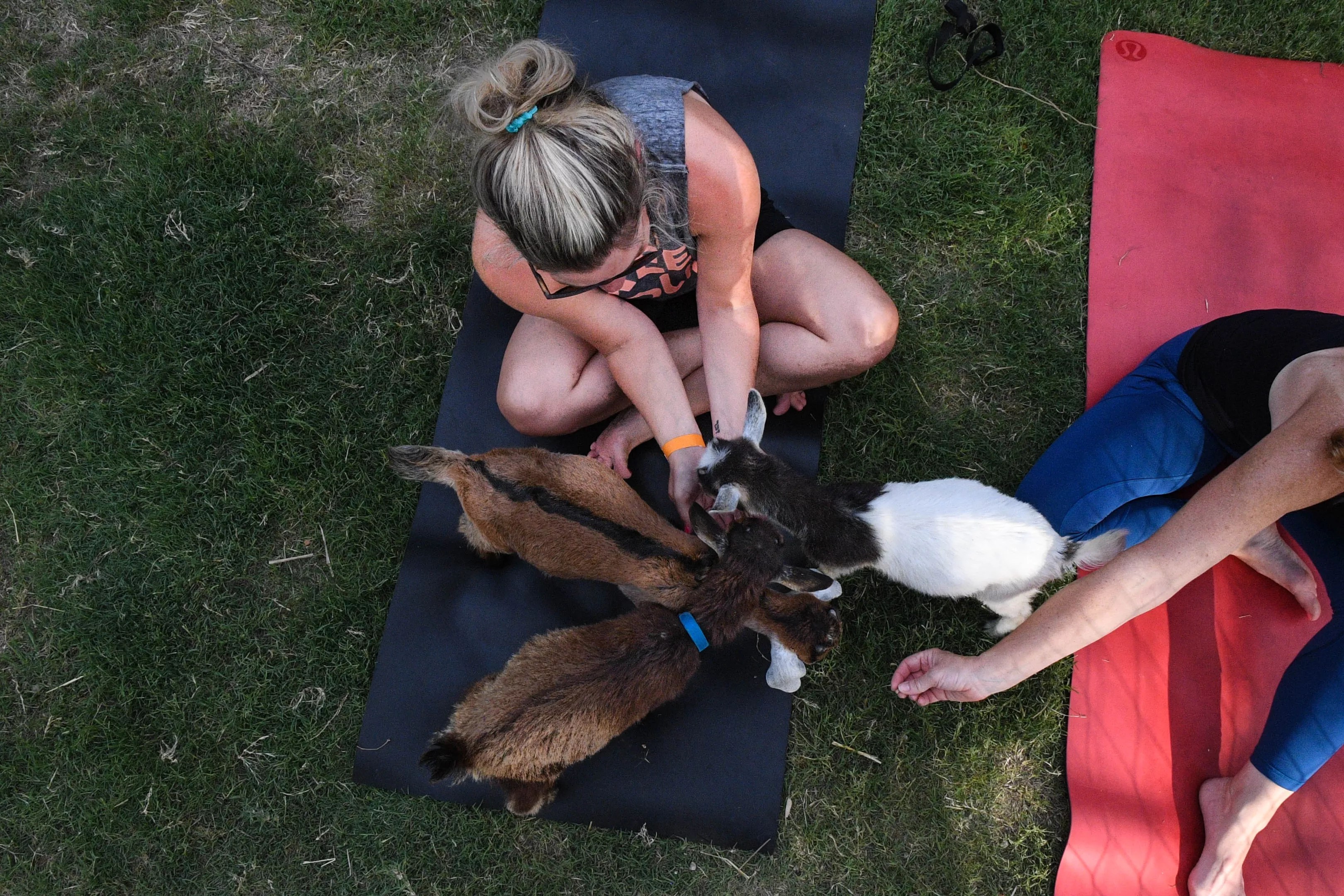 Stretch while you keep the company of a few goats.