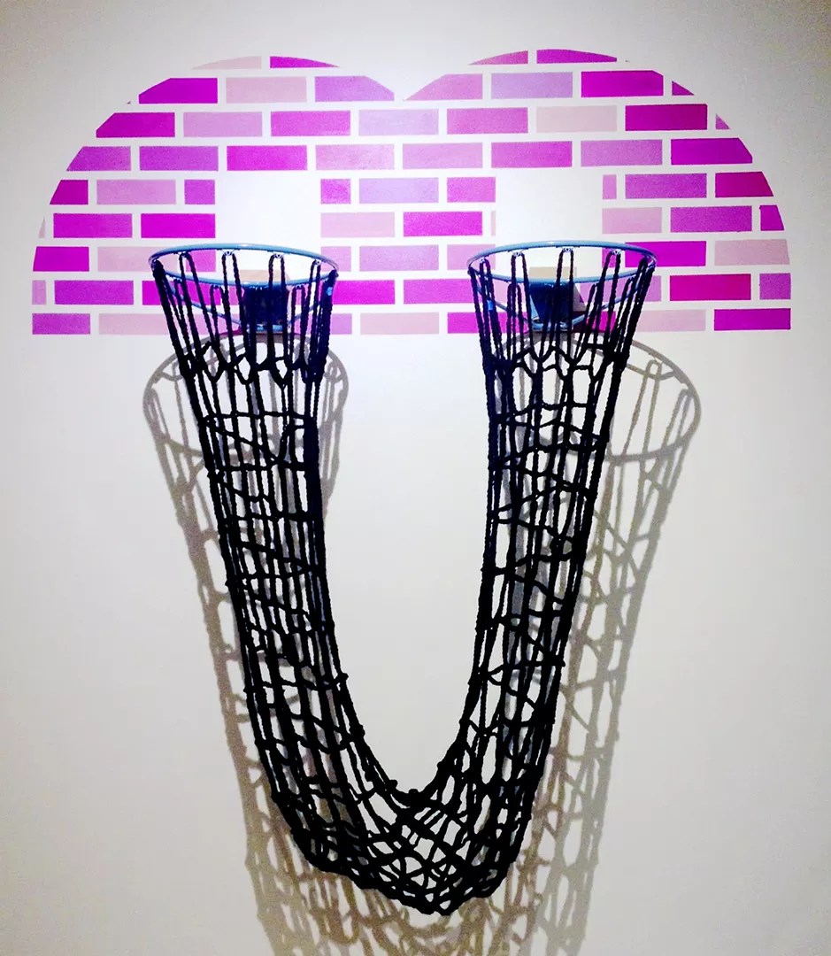 Their installation, Sidelines: Soft Power in the Margins, currently on display in the gallery, crafts together beautifully the sportsmanship and physicality of athletics with hand-knit, crochet and macramé basketball nets hanging from empty hoops.