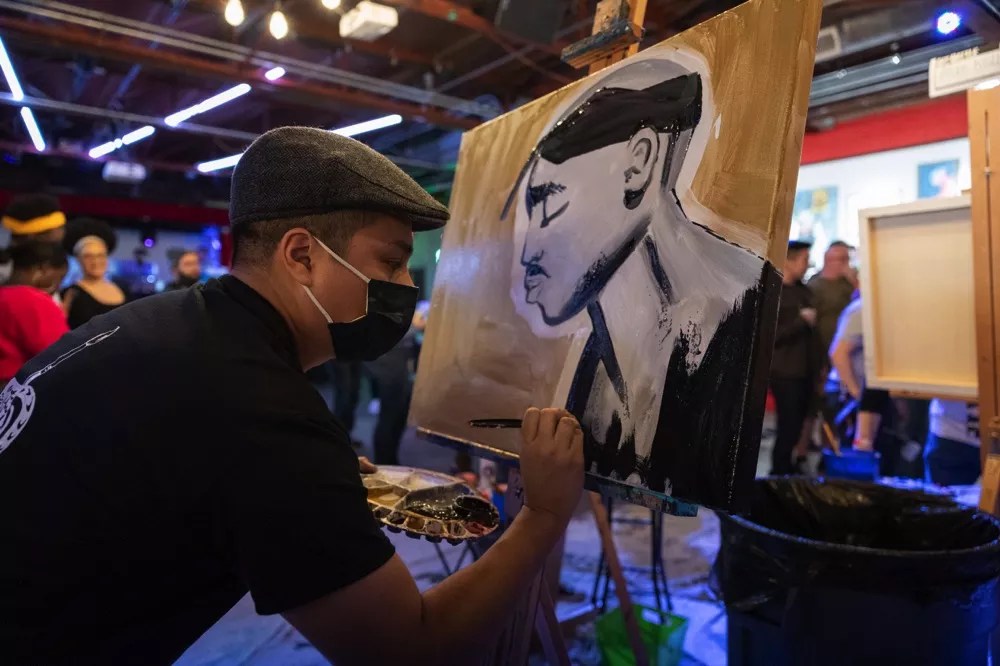 Art Battle started in 2018 and was designed to to build both the artists’ profiles and a stronger art community in participating cities. The artists take the competition seriously, but it’s more a supportive gathering than competitive. Fernando Olivares took home the laurel for his portrait of Tupac. Andrew Sherman