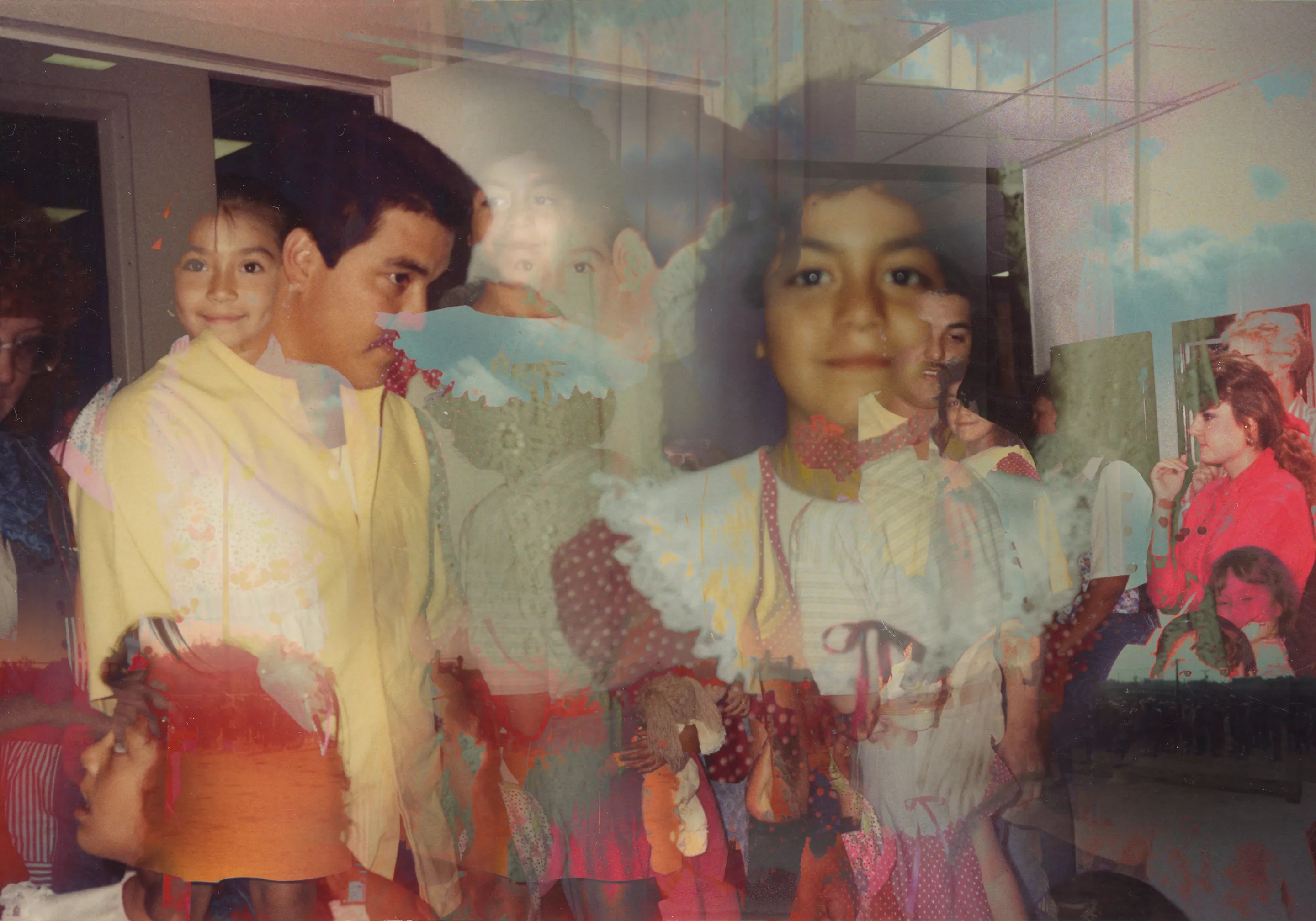 Since starting his Recapture series in early 2023, Omar has formatted retellings of family trips to the Mexican border, birthday parties at Chuck E. Cheese and JC Penney’s studio family portraits.