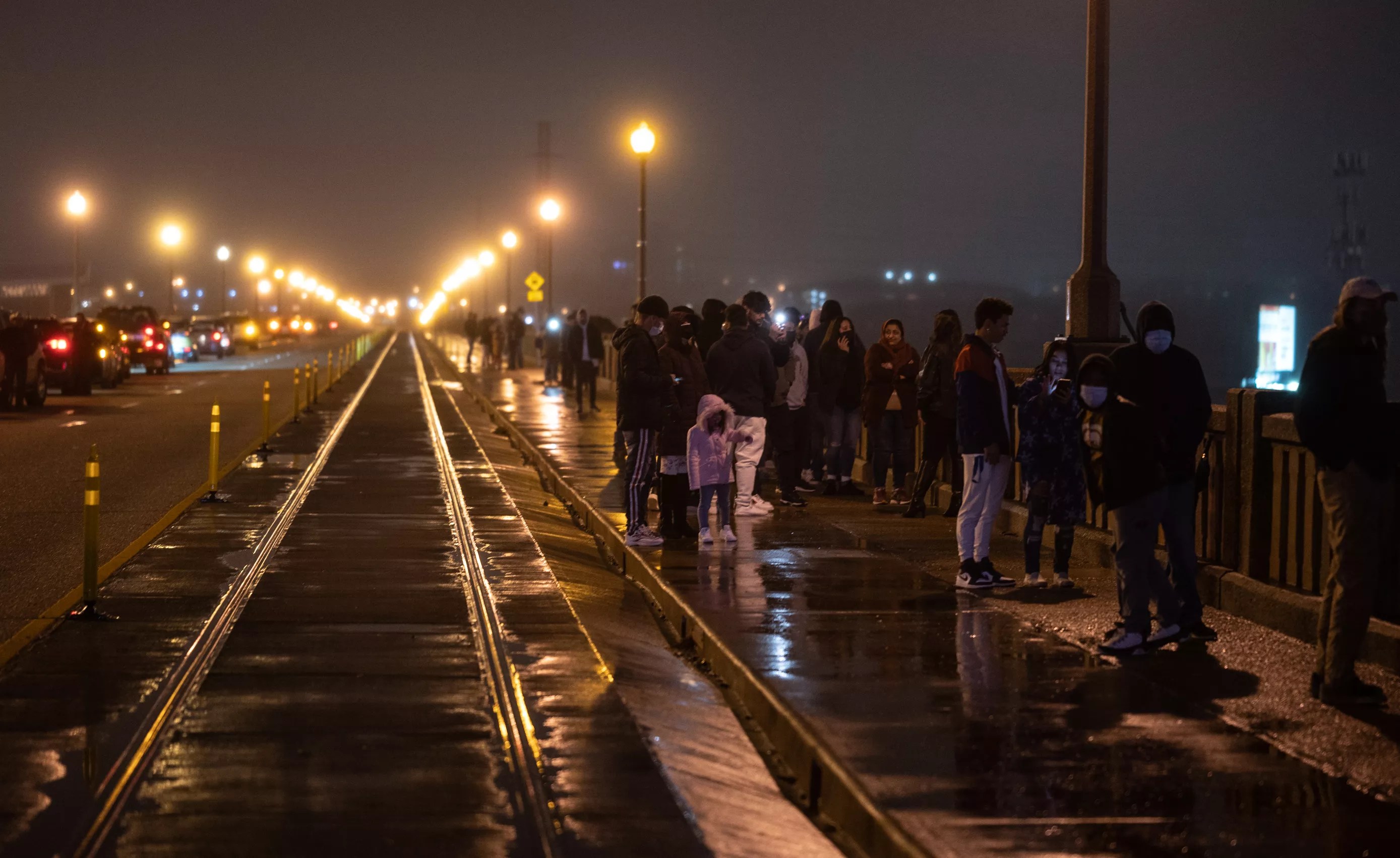 This photographer eschewed the opportunity for a media pass, a tent, and maybe a bad cup of coffee and a porta potty, because, as an Observer contributor, I am of the people. Instead, along with hundreds of other freedom-loving Texans, doubled-parked on the Houston Street bridge, where not only was there an unsupervised COVID-defying gathering, but the traffic hazards of unplanned lane closures as well. Together we had a great and unobstructed view of Reunion Tower across the empty fields and parking lots.
