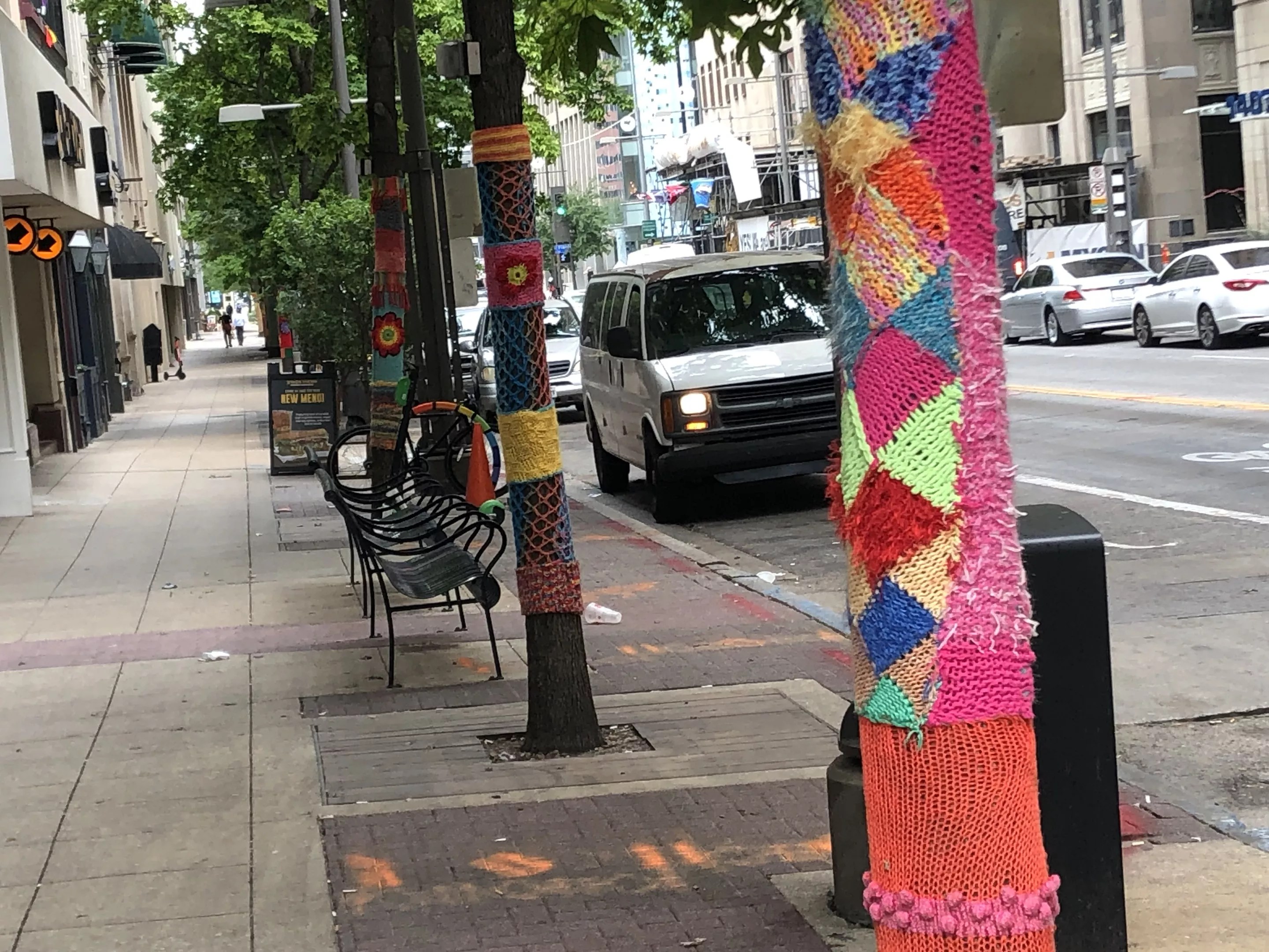 The yarn bombs in downtown Dallas come as part of an initiative to add color and art throughout the city. In recent years, street art has grown seemingly exponentially within downtown Dallas, with the addition of murals and sculptures. According to Ackerman, she was not given any set instructions for her yarn bomb contributions.