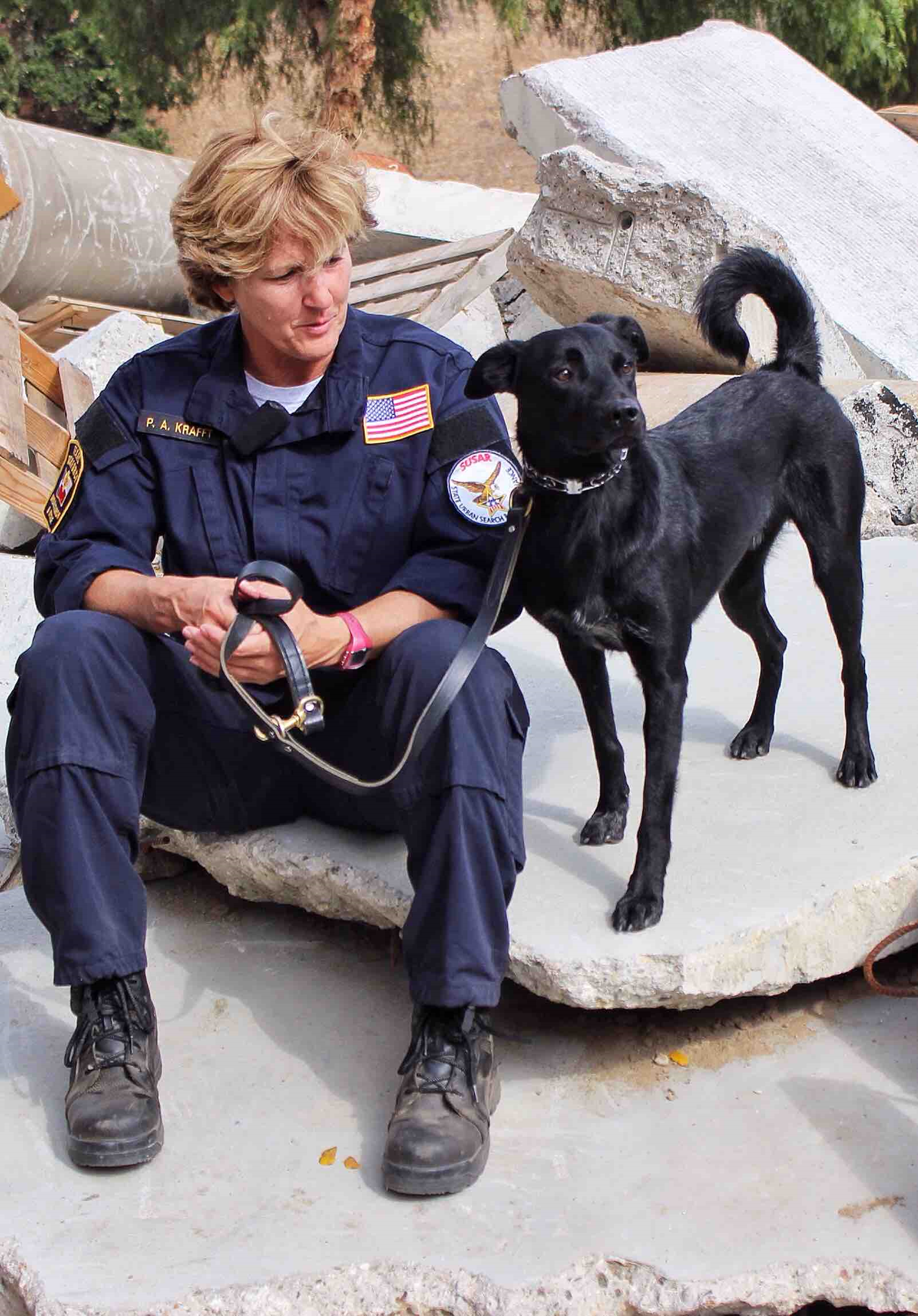 Lt. Patti Krafft, who has been a Dallas firefighter for nearly 30 years, handles Billy, a live-find dog from Texas Task Force Two. She describes the dog as a playful, 5-year-old mix of Labrador, border collie and Australian shepherd. She and Billy were paired three years ago, and their most recent mission was in Canton after April’s tornadoes.