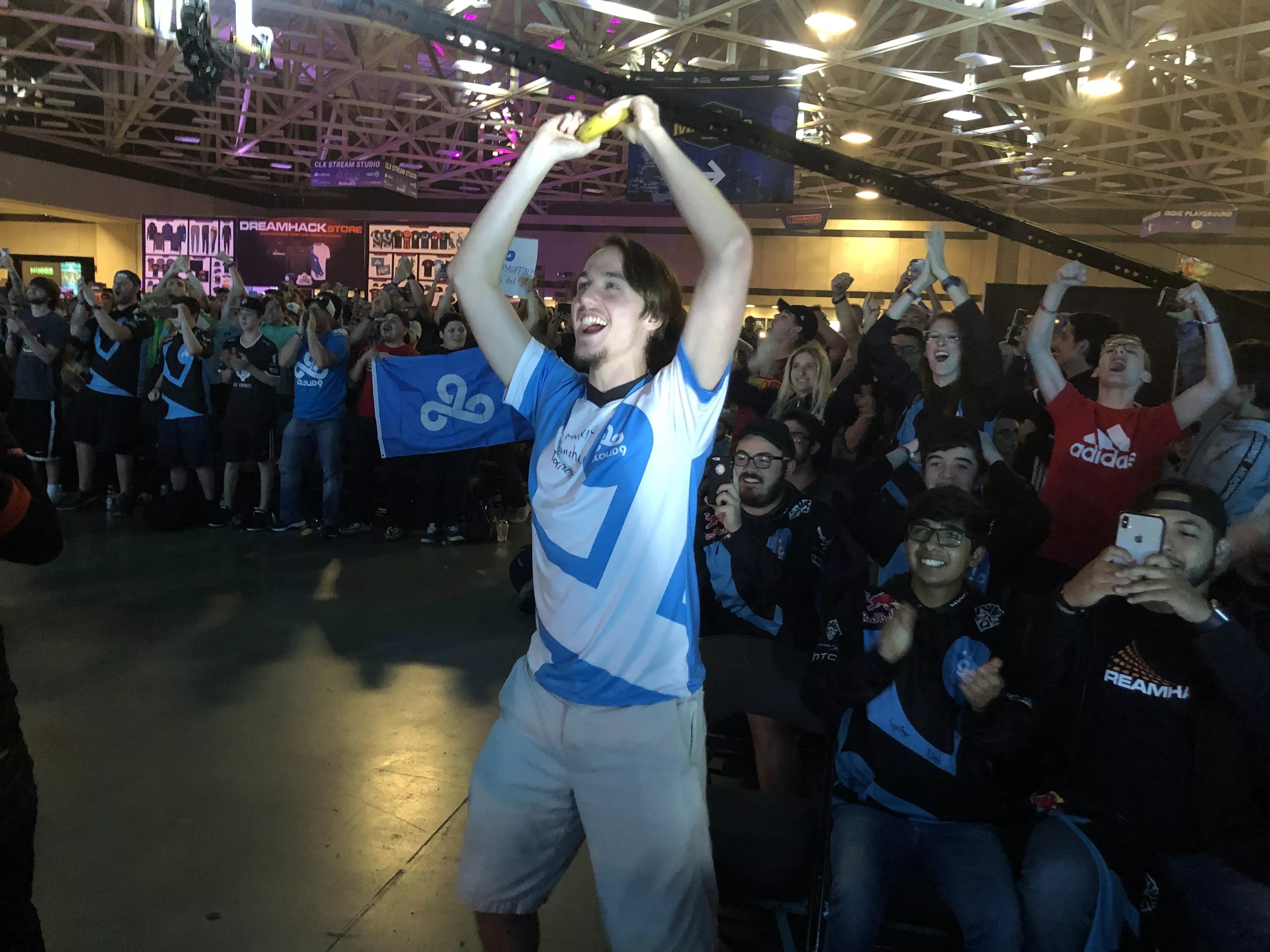 John "Reso" Nabergall of Houston celebrates Cloud9's win over TSM in the DreamHack Masters tournament for Rocket League at the DreamHack con.