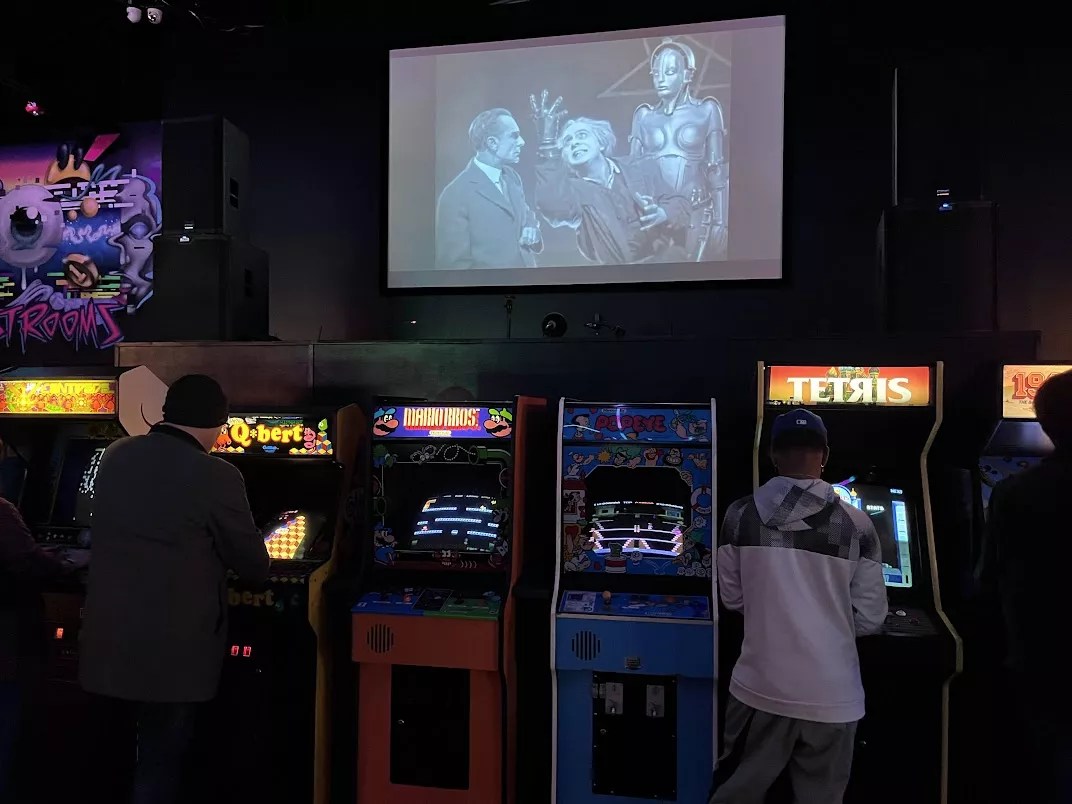 There’s even room to organize some of the rarest games into their own space. The rear hallway next to the bar has two rows of Japanese manga and rhythm games that don’t usually pop up in American arcades. The wall next to Gulden Lane has three rows of new and classic pinball games. If you look hard enough, you’ll find hiding spaces where the staff have tucked away rare classics such as Sega’s Time Traveler, a full-video hologram that’s actually a terrible game but is extremely rare because the parts needed to make it work are so hard to find.