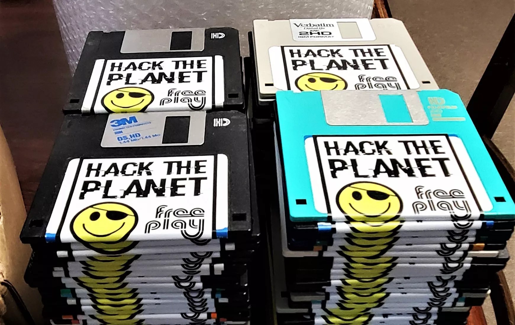 Hyden’s concept for a hacker party with a mysterious ’90s tech-style giveaway quickly went viral and the event sold out fast. He showed one of the first disks to someone who was excited just at the sight of it, Hyden says.