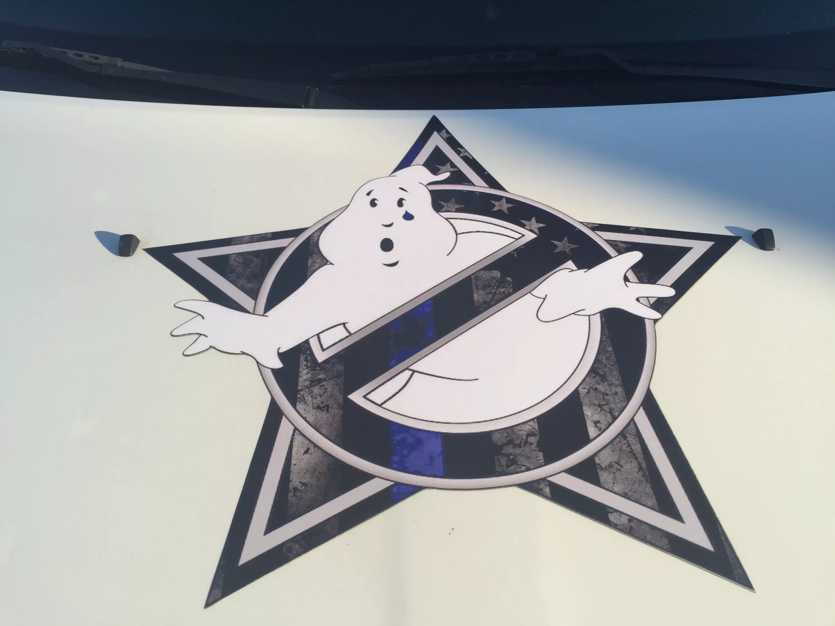 The DFW Ghostbusters group added a tear to the logo on the car’s hood after the 2016 sniper attacks that took the lives of five police officers in Dallas.