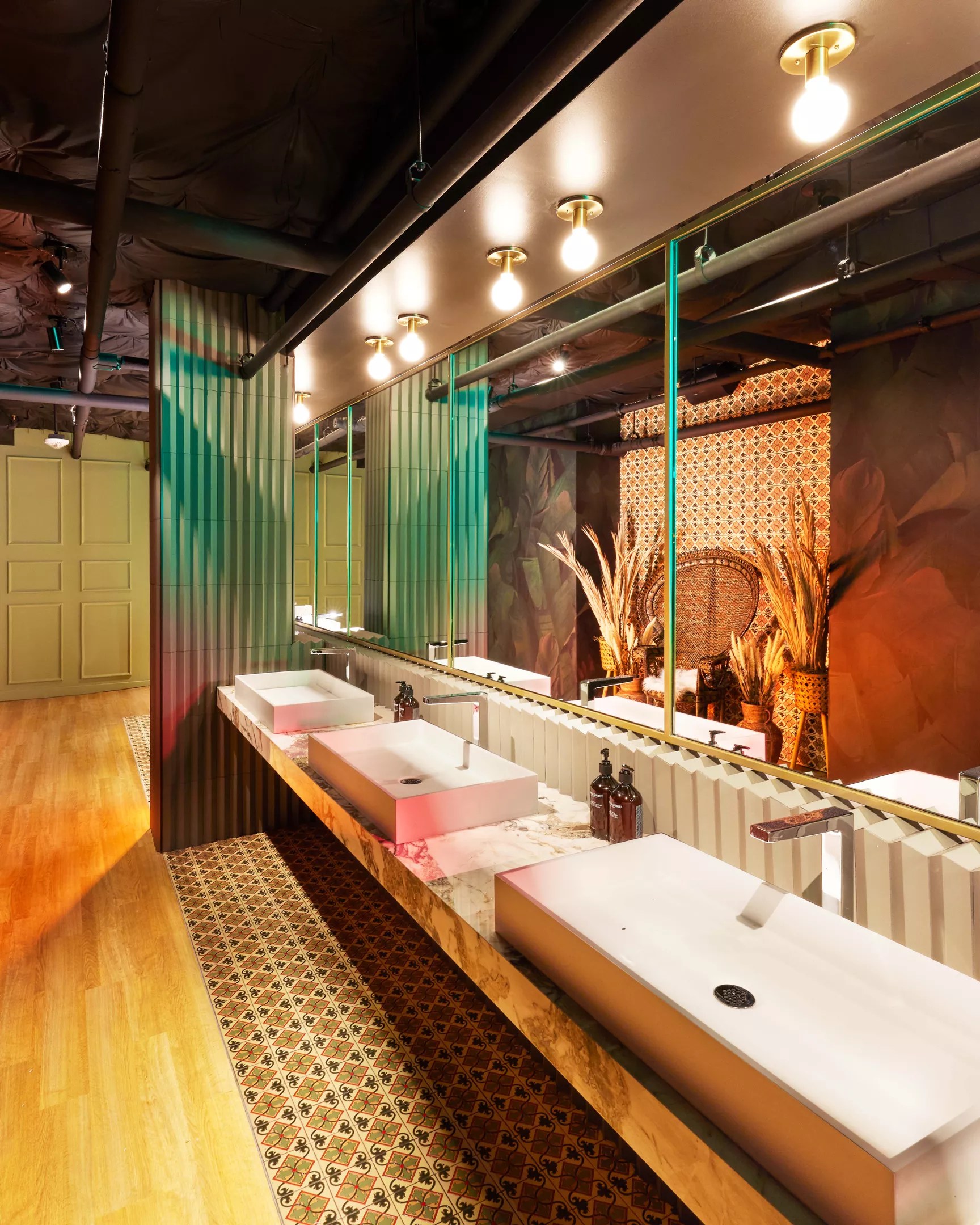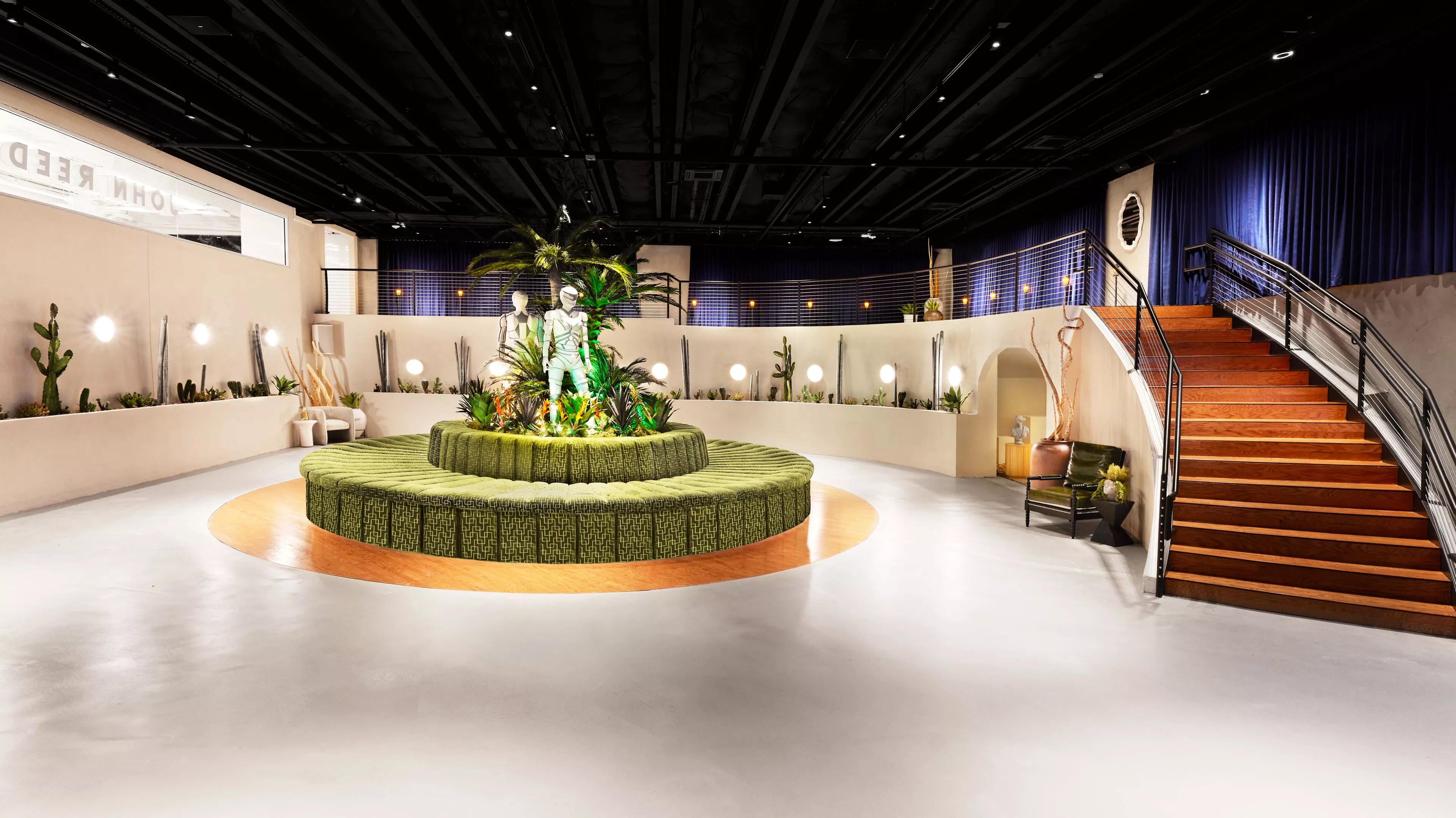 Apart from the neon light signage adorning the walls and the reflective lobby mannequins, John Reed’s design elements include a custom floor mural by Texas artists.