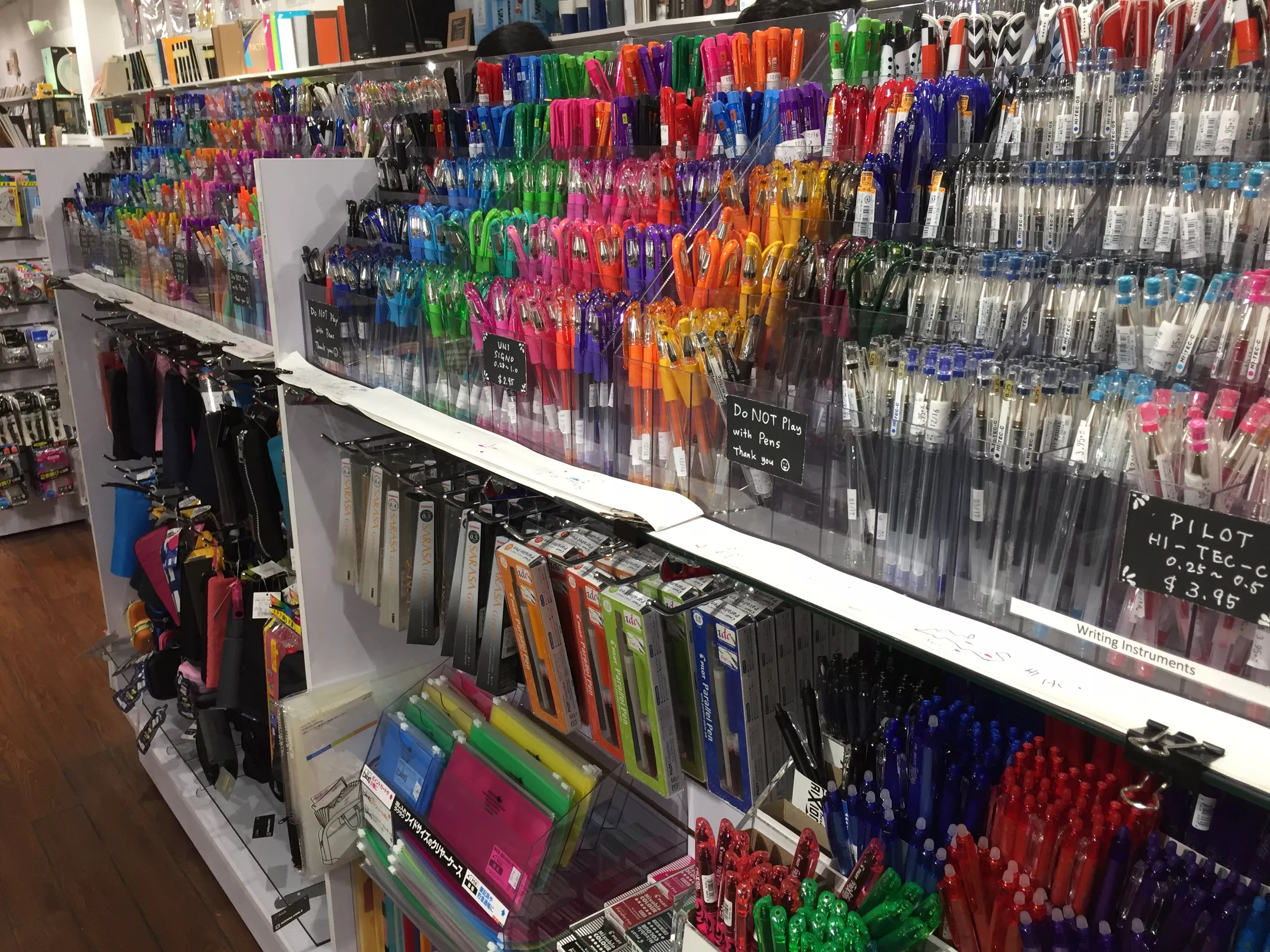 Um, yes this needs its own category aside from the pencils. I’m no calligraphy pro, but the build-your-own set-up is impressive. Watanabe explained to us: Choose your nib, body and ink and the Kinokuniya folk will recommend the journal with the ideal paper match. It’s a whole thing. Also, remember those four-way pens when we were kids? The ones with red, blue, green and black? Well, at Kinokuniya you can build your own. Add three widths of purple ball point if you want – it’s your pen game. There is also the most gorgeous selection of Sharpies, Le Pen and a variety of gel pens, as well as other art pens suited for drawing.