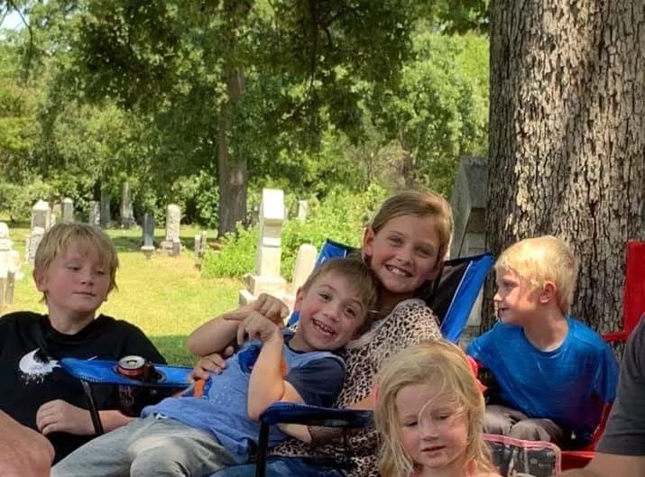 From left: Bryson Bell, Jaelynn Jones, Jesse Bell, Aiden Bell and Ellis Bell attending the 2022 Oakland Cemetery Picnic and Fundraiser.