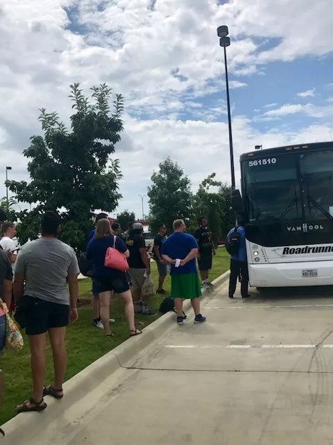 Loyd’s tours in Austin and Arlington recently began selling out, so he’s started renting bigger buses. We recently joined a Sunday tour in Arlington. It was the second of two back-to-back tours, and there were 30 people on board the bus. The tours have a festive atmosphere, with music playing and snacks and drinks on offer.