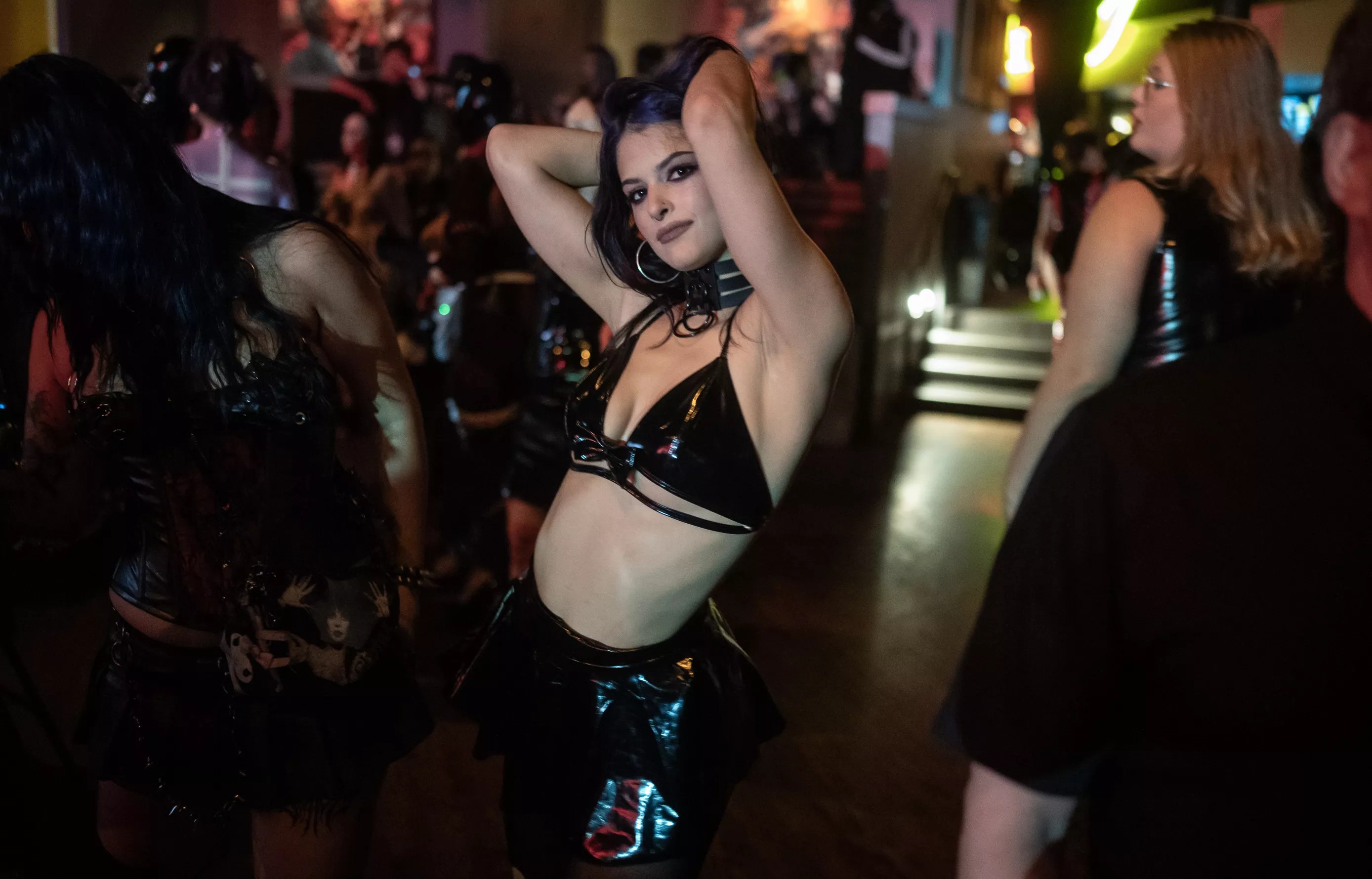 Decked out in latex and ready to party.