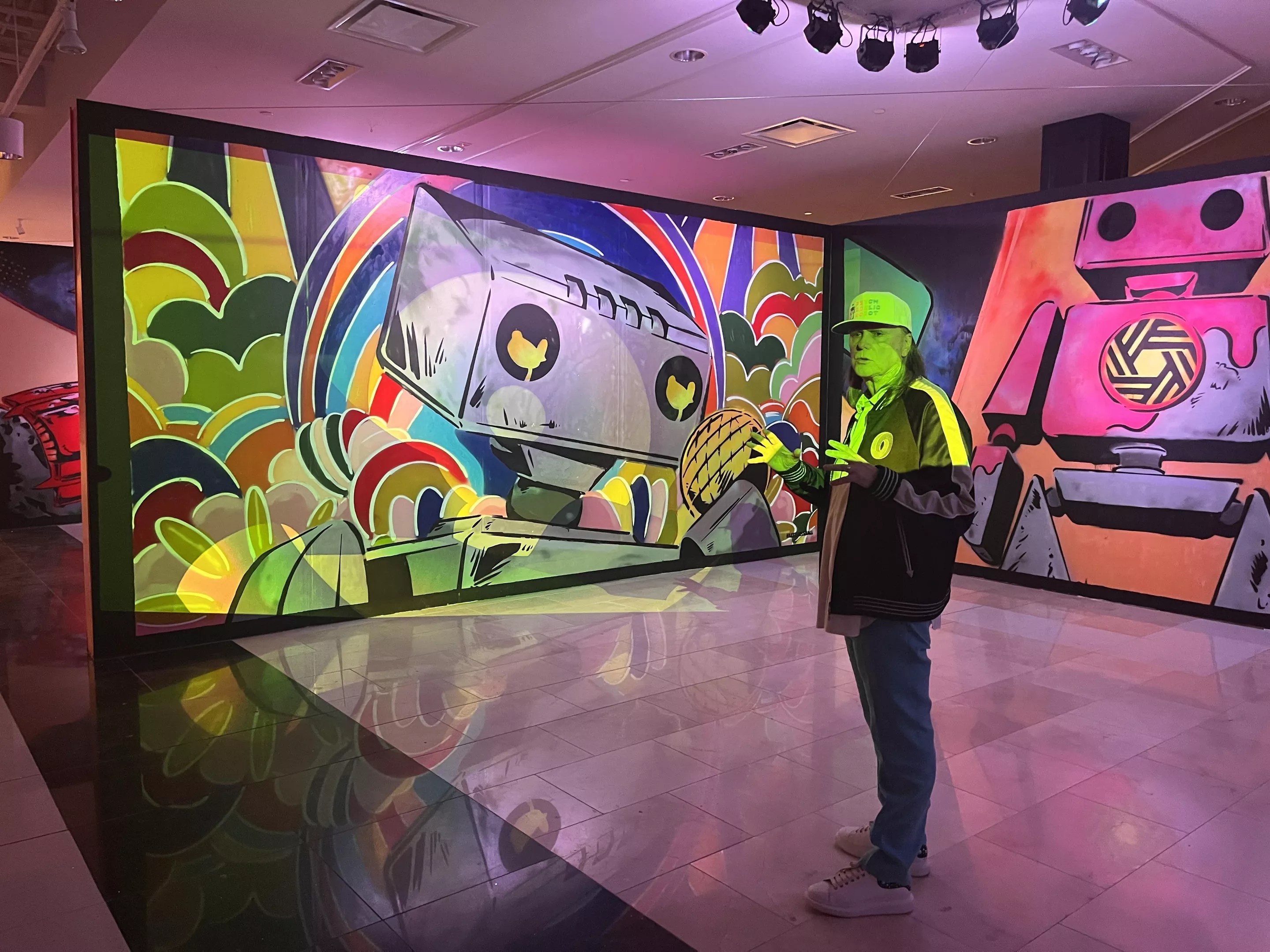 “We’re blending art, technology and audio all together and stretching the genre of storytelling,” says Psychedelic Robot founder Michael Bivins, who created the art experience with his wife, Karen. “This is like a giant comic book, and I think it’s a way that younger people can appreciate art with things they might be interested in.”