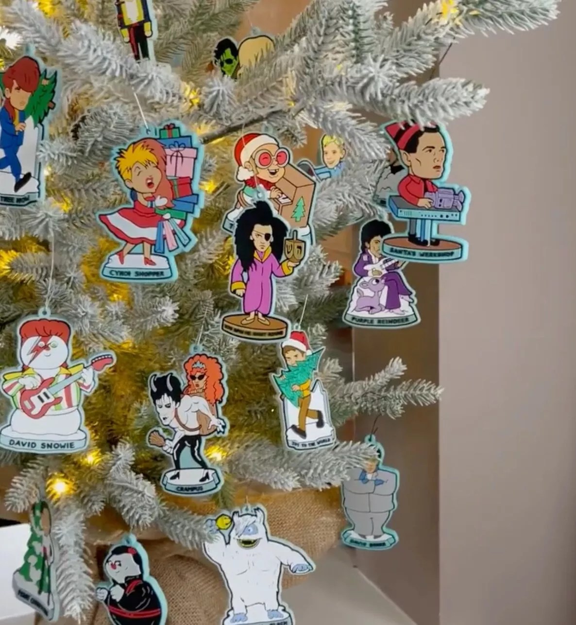 Another pop culture ornament notable is artist Matthew Lineham, who seven years ago began using rubber to make ornaments based on his favorite musicians. His “Very New Wave Christmas” was launched with the likes of “Siouxsie Lou Who” and “David Snowie,” and he’s added to the assortment every year with styles based on the Cramps, Grace Jones, Kraftwerk, the B-52s and the Ramones, to name a few. Lineham says he and his wife think of the puns that inspire the ornaments all year. The brainstorming session this year led to a sold-out array of alternative stars, including “Pine Inch Nails” and the “Chocteau Twins.”