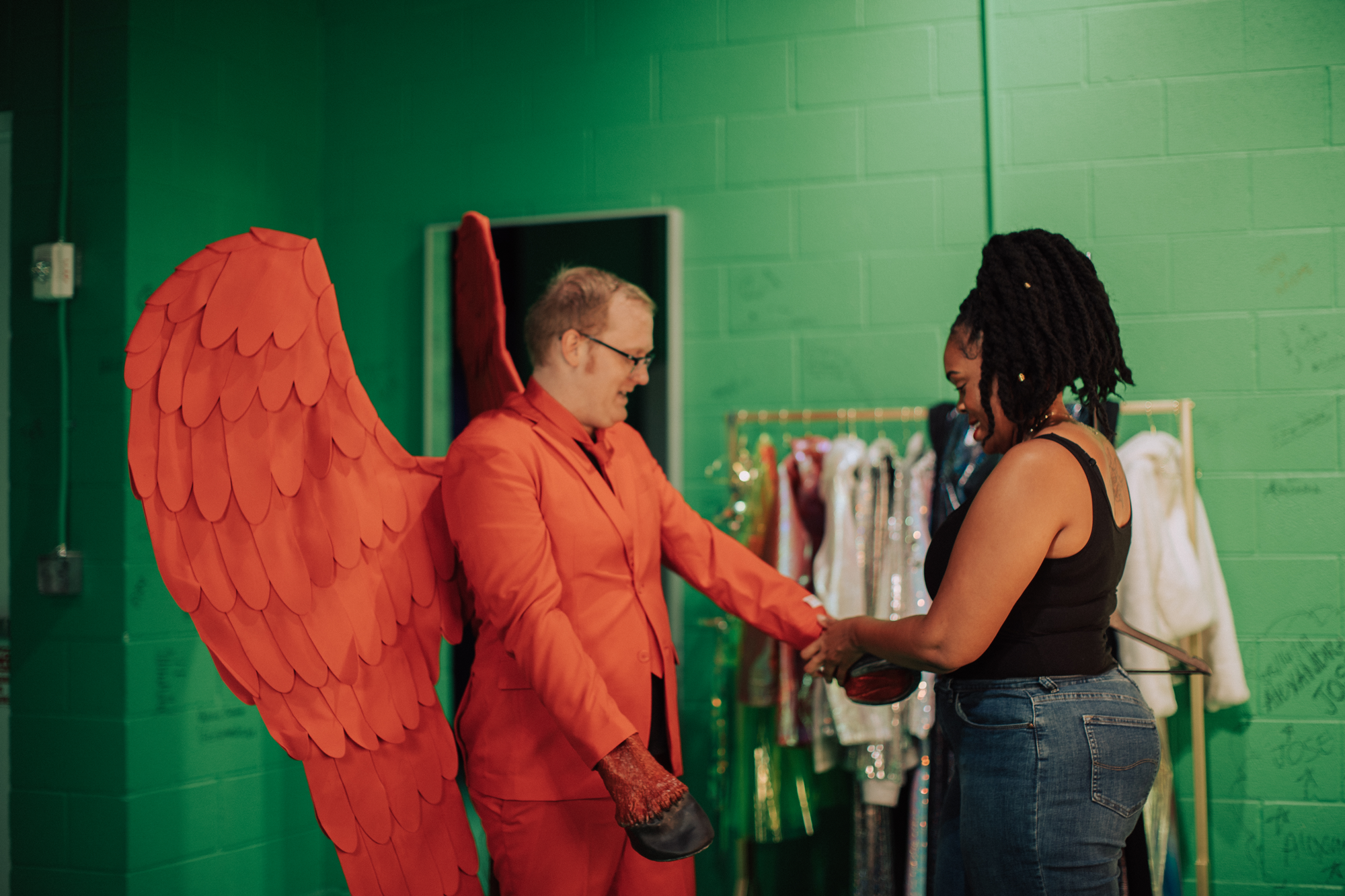 Daniel: Red was filled out by me, Daniel Rockey. I’m a writer for the Dallas Observer, and a freelance multimedia artist around Dallas and beyond. Being Red was both exhilarating and terrifying at the same time. The outfit has a strange sense of power to it, I think mostly due to the enormous nature of the wings. The mask, though, is very form-fitting, to say the least, and while I’m not claustrophobic, it was sometimes a challenge to wear it for extended periods of time.