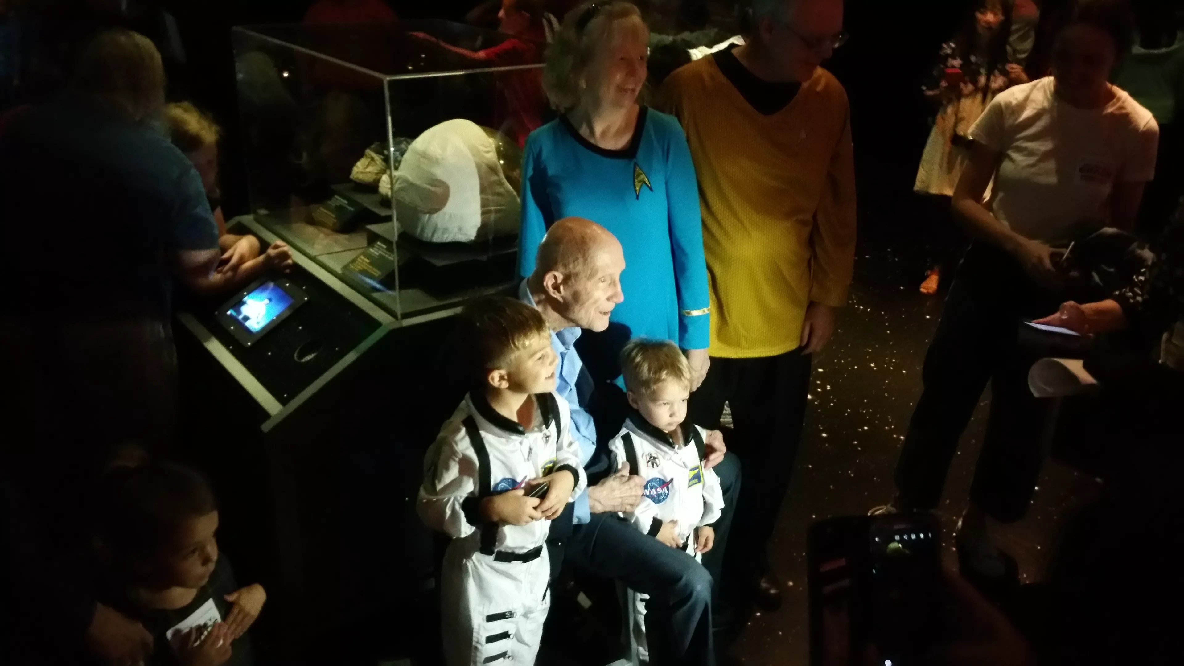 Space people are some of the best people. James and Marilyn Souders knew their grandchildren have aspirations to travel to space, and the NASA pressure suit costumes to prove it. So the Plano couple, both museum members, packed up James and Rowan Fowler and drove the grandkids to the Perot for opening day. Above, they pose for a photo with Stafford, a legendary NASA Gemini and Apollo astronaut. And yes, both grandparents donned their Star Trek uniforms for the occasion.