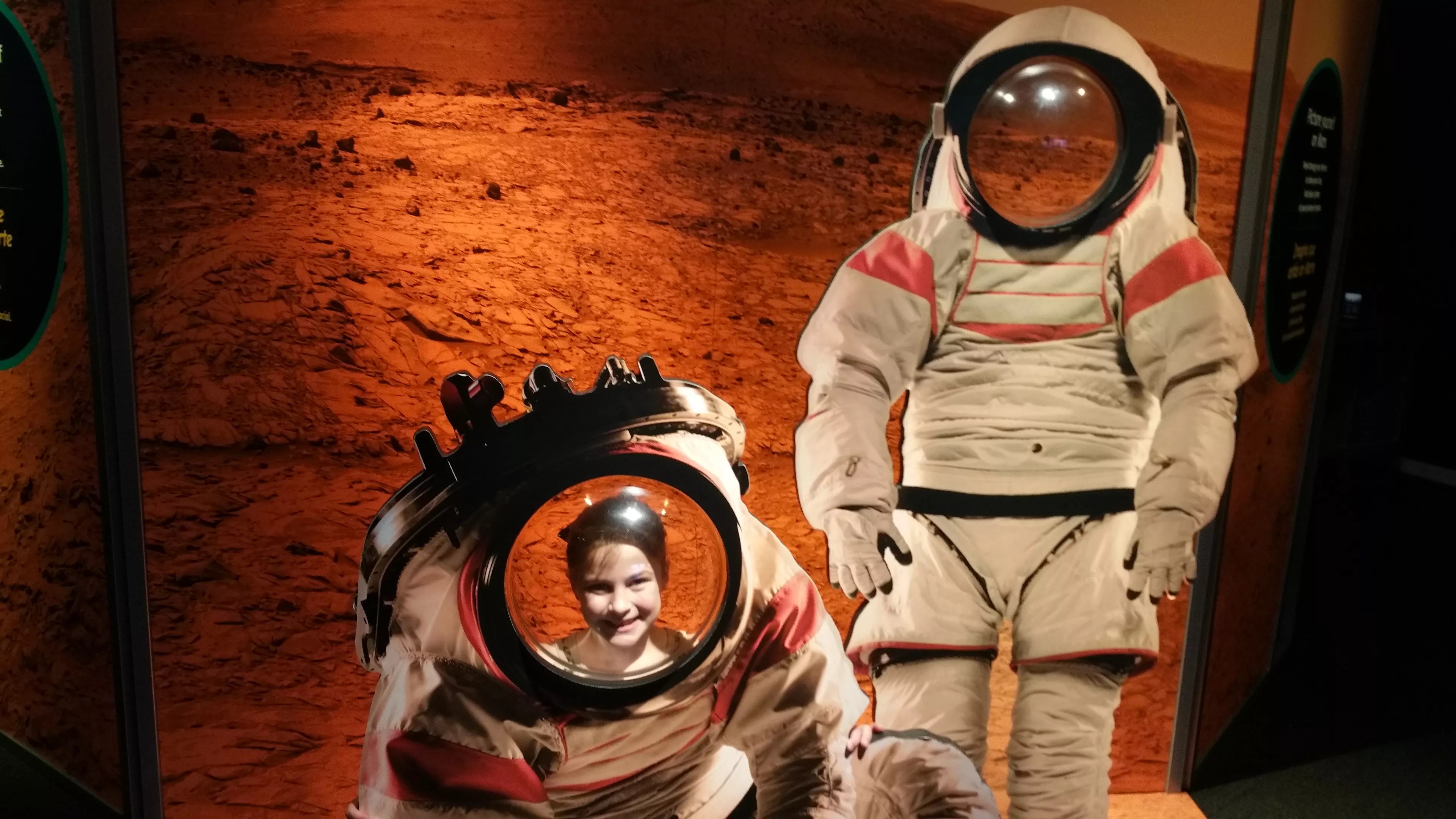 Allie Stark poses inside a mockup of a Mars spacesuit. Journey to Space doesn’t do as good a job at bringing Martian colonization to life, compared with its interpretation of the ISS. Still, it provides a nice sense of unexplored worlds and ambitious expeditions that hopefully will kindle an interest in science and engineering in the kids who visit.