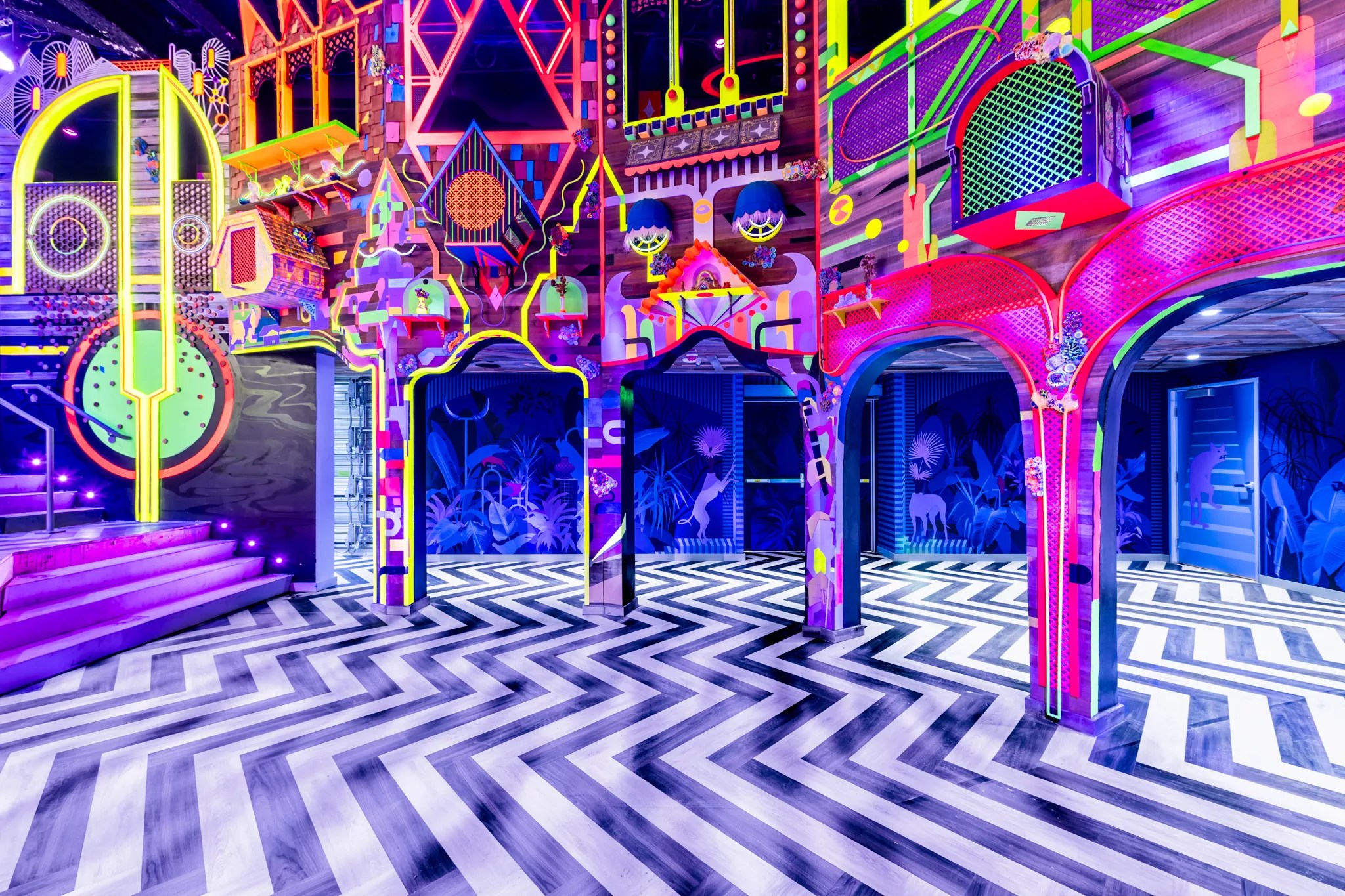 Once you enter the zone into which Jared vanished, Meow becomes its a-maze-ing best. Rooms disappear into other rooms, corridors spill out into a futuristic neon marketplace and stairs lead down to a colorful stage area that will eventually be used for performances, including (according to a guide) poetry slams and drag shows.