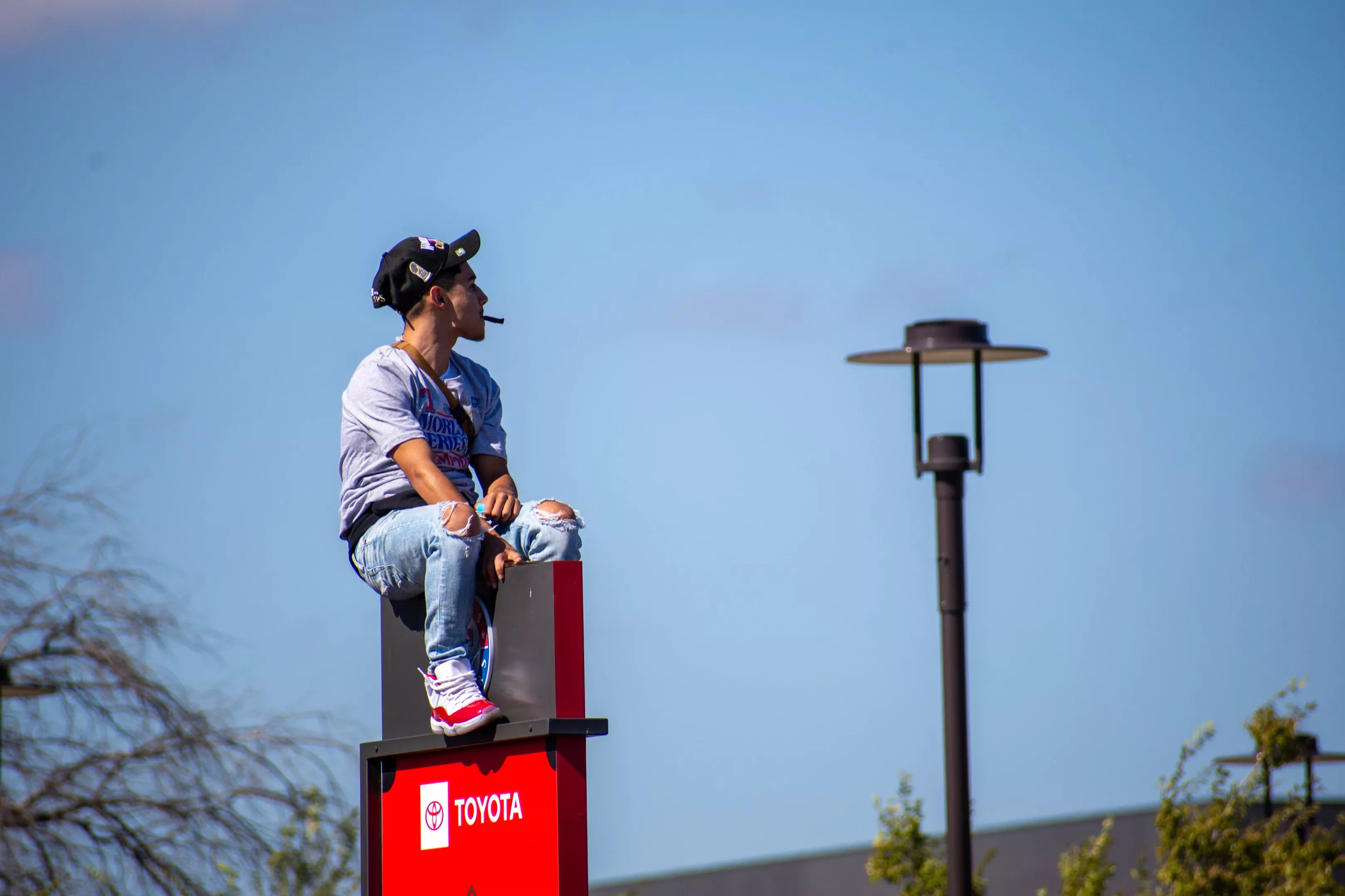 Street signs were the best seats in the house for those brave enough.