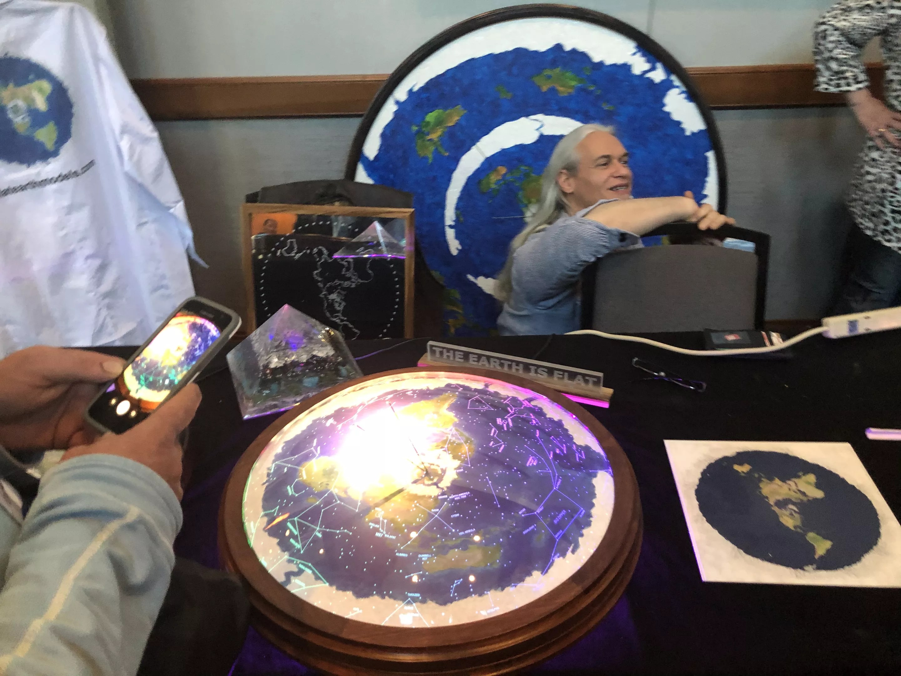This seems to be the foundation for Davidson and other attendees’ belief that the Earth is a flat plain encased in a dome like a giant snow globe. Skiba noted in the press briefing that this is not a religious organization, but Davidson also told me, “There are no atheists in Flat Earth.”