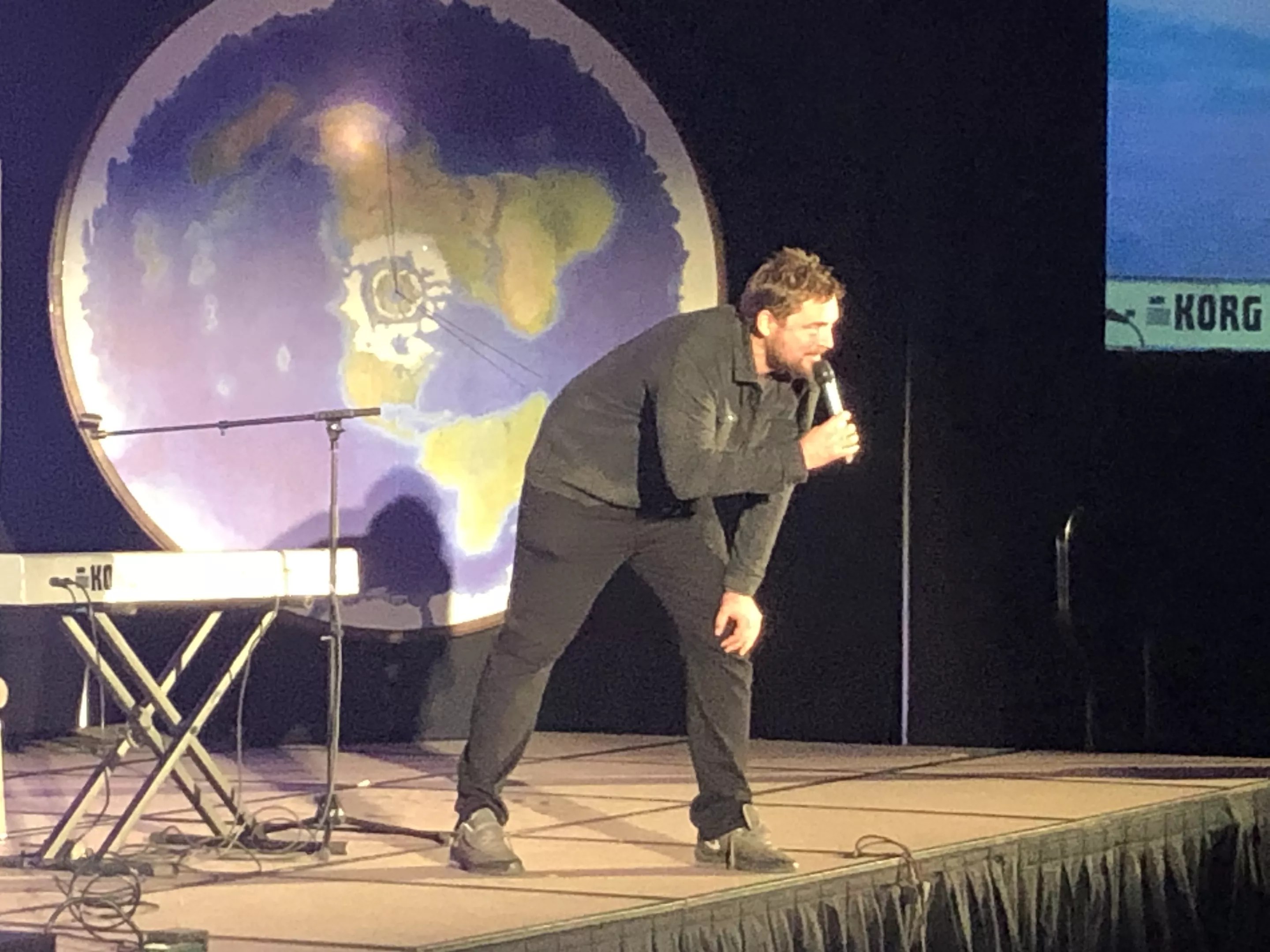 Alt-right comedian and newly converted flat Earther Owen Benjamin performs “comedy” at the Flat Earth International Conference.