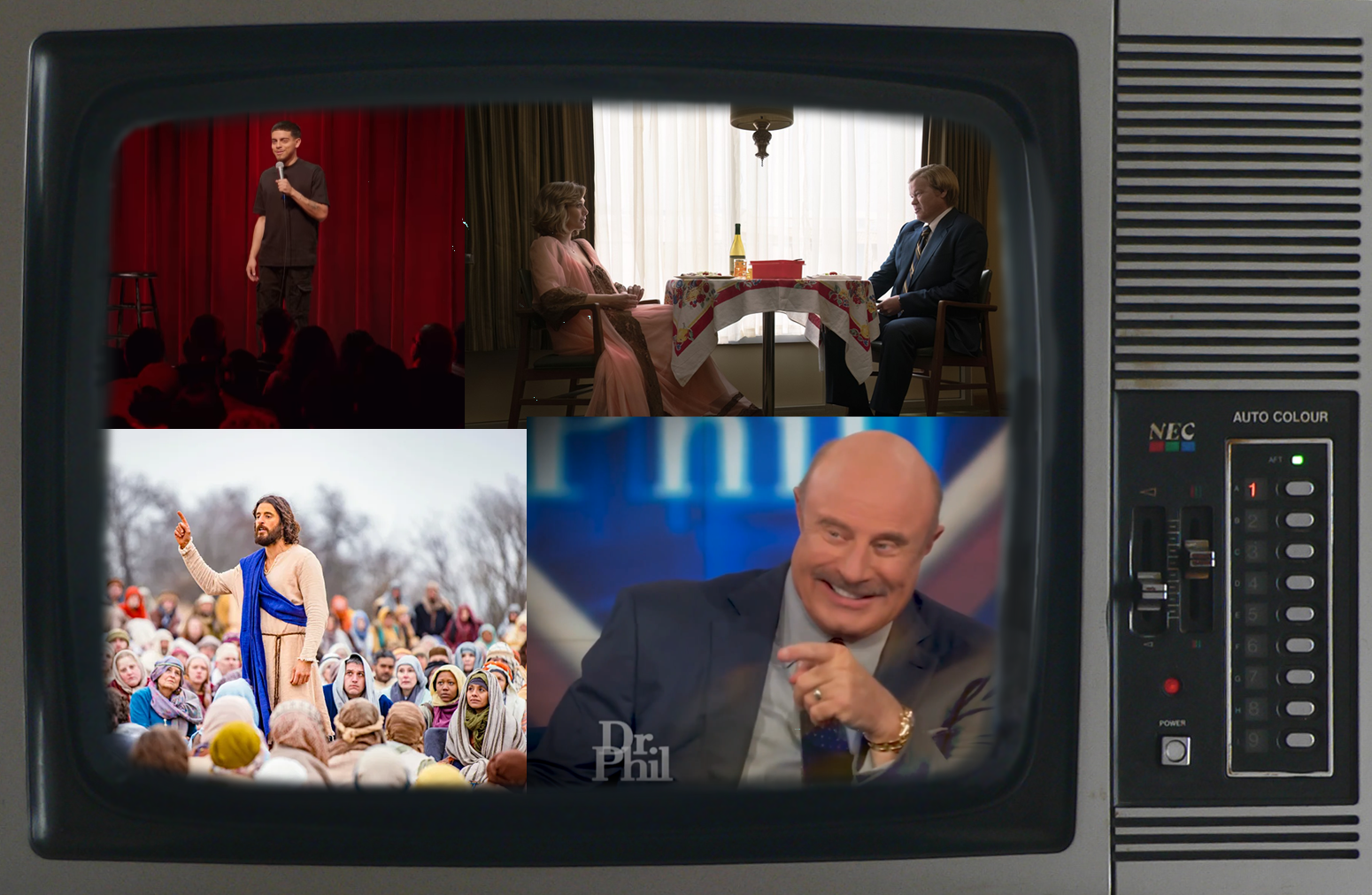 TV set by SadLilElf via Deviantart/Netflix/HBO Max/Angel Studios/Merit Street Media