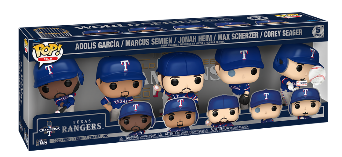 So it shouldn’t be a surprise that Funko has released a new line of Pop! dolls celebrating the Texas Rangers’ World Series win. The new line is a set of five dolls recreating the looks of key Rangers’ players: outfielder Adolis Garcia, second baseman Marcus Semien, catcher Jonah Heim, pitcher Max Scherzer and shortstop Corey Seager.