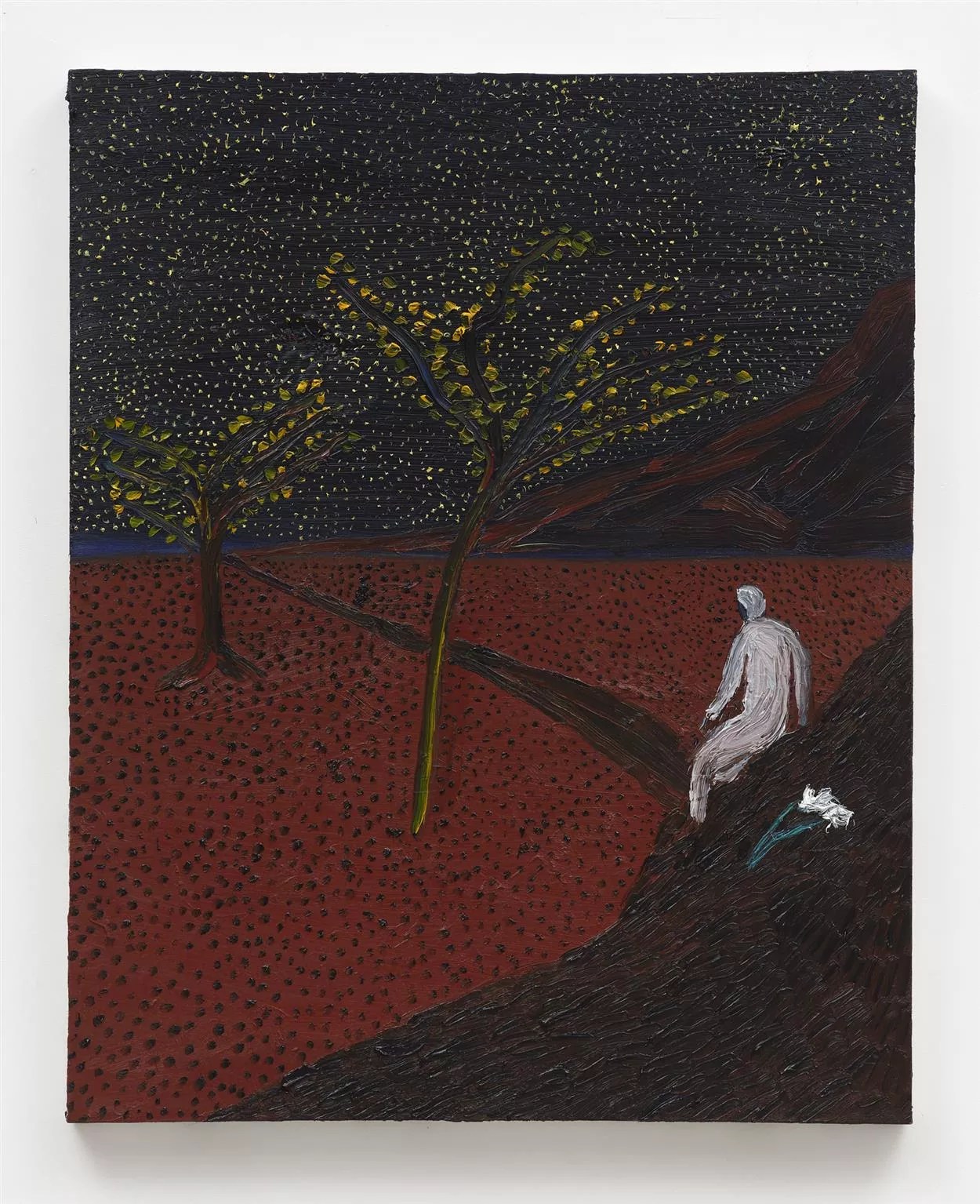 Two autobiographical paintings were selected by Fordjour, an interdisciplinary artist from Memphis. Thursday, Delahunty remarked on being taken with the “violence inherent in the work,” which explores Fordjour’s Ghanian heritage. He is represented at the Dallas Art Fair by Luce Gallery in Turin, Italy.