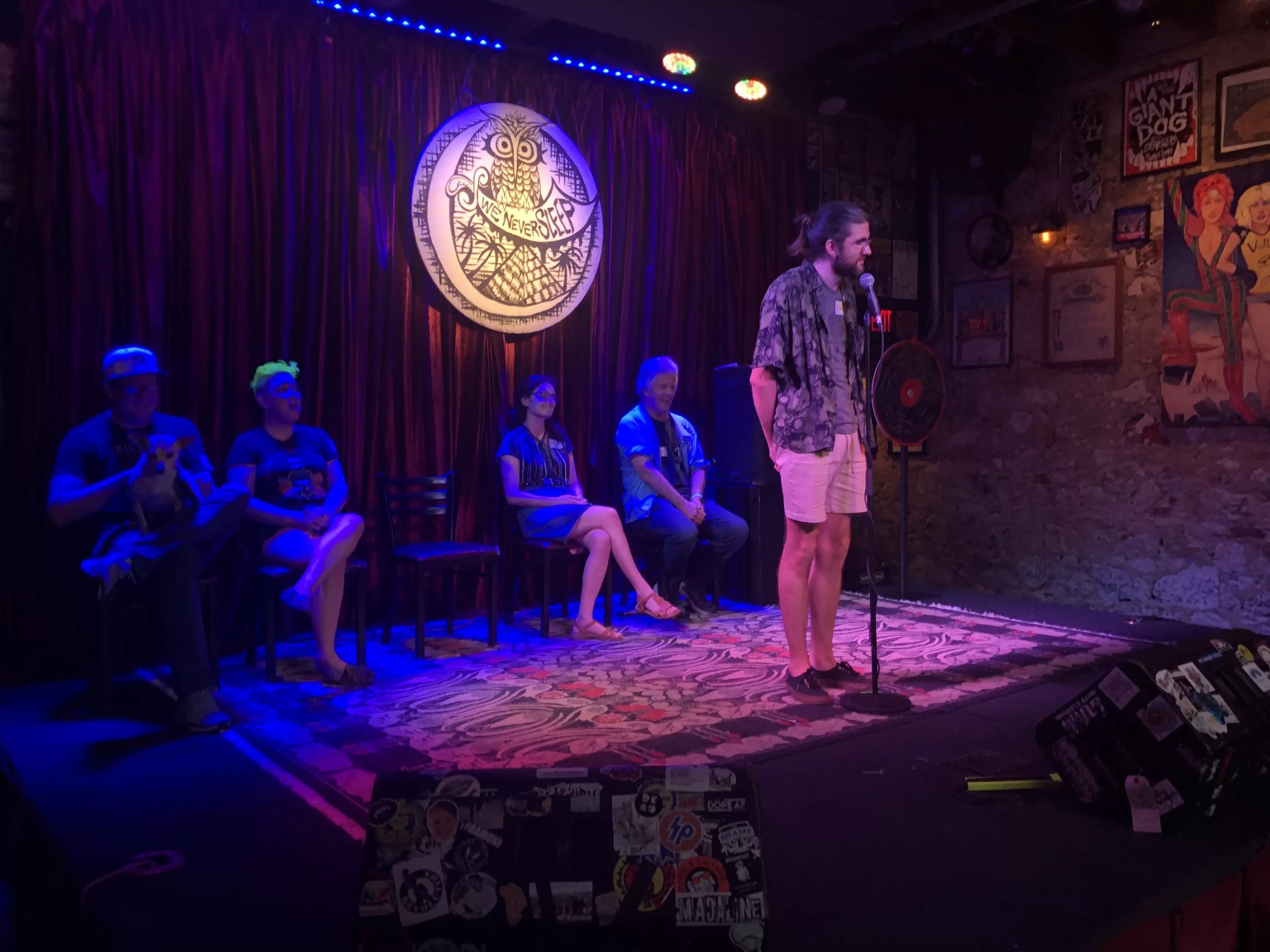 I stepped up to the mic clutching my beer the same way I clutch the seat in front of me during turbulence on a bumpy airplane ride. Sarah read my word to me: “chihuahua.”