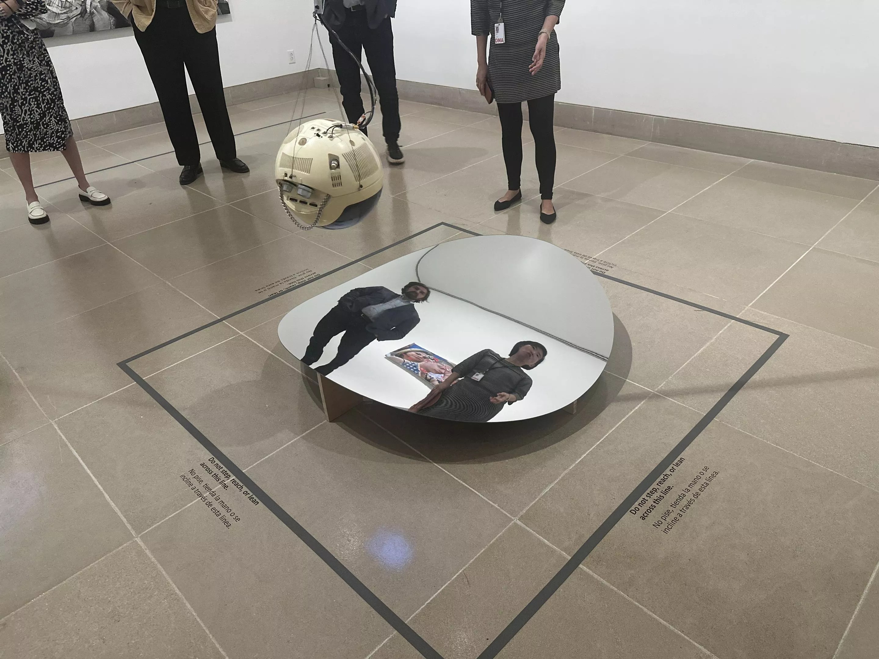 Li’s section also contains a dichotomy between the desire of marginalized groups to represent themselves in their art versus the stakes of visibility and surveillance. Pieces include Shigeko Kubota’s 1981 sculpture “Video Haiku – Hanging Piece,” which is made up of a camera swinging above a mirror, and Pacita Abad’s “How Mali Lost Her Accent,” which juxtaposes the successes of its Laotian subject who was accepted into multiple Ivy League schools with the pressure to assimilate into white institutions and lose her heritage.