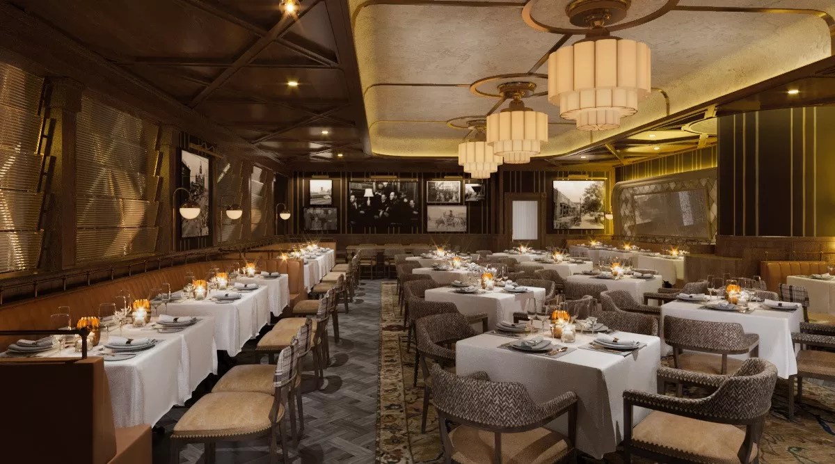 A press release from Harwood Hospitality says the restaurant will have “rich leathers reminiscent of briefcases and gold accents exuding a masculine charm, creating a setting that is both relaxed and refined.”