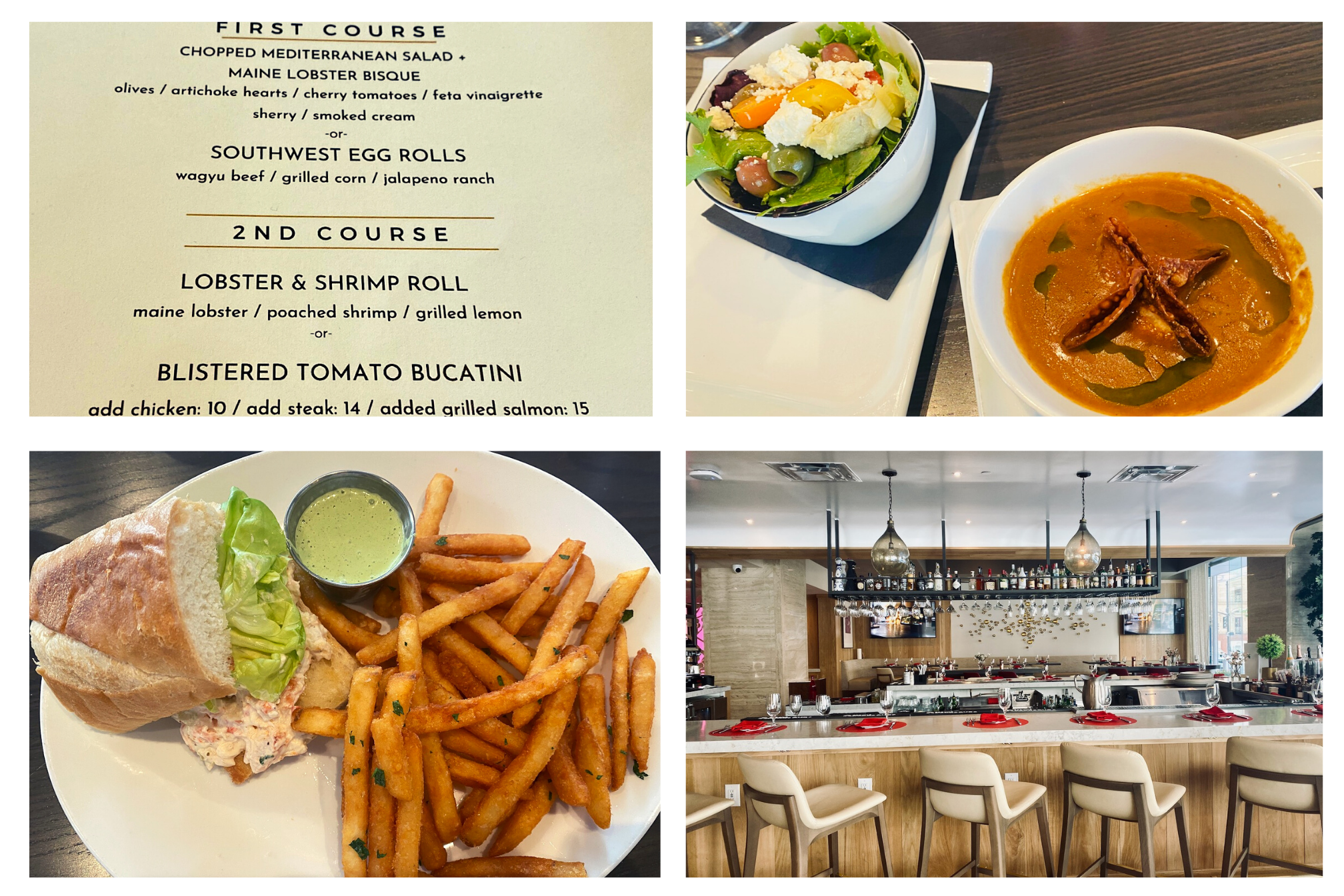 The menu at Hawthorn starts with a soup and salad combination, or wagyu beef Southwest egg rolls. The second course is either a pasta dish – bucatini with blistered tomatoes that are bursting with so much sunshine goodness I found myself digging through the pasta for more of these gems. My lunch date got the shrimp and lobster roll that came with a heap of perfectly crisp French fries (pro tip: ask, aggressively if need be, for the jalapeño Ranch to go with those fries).