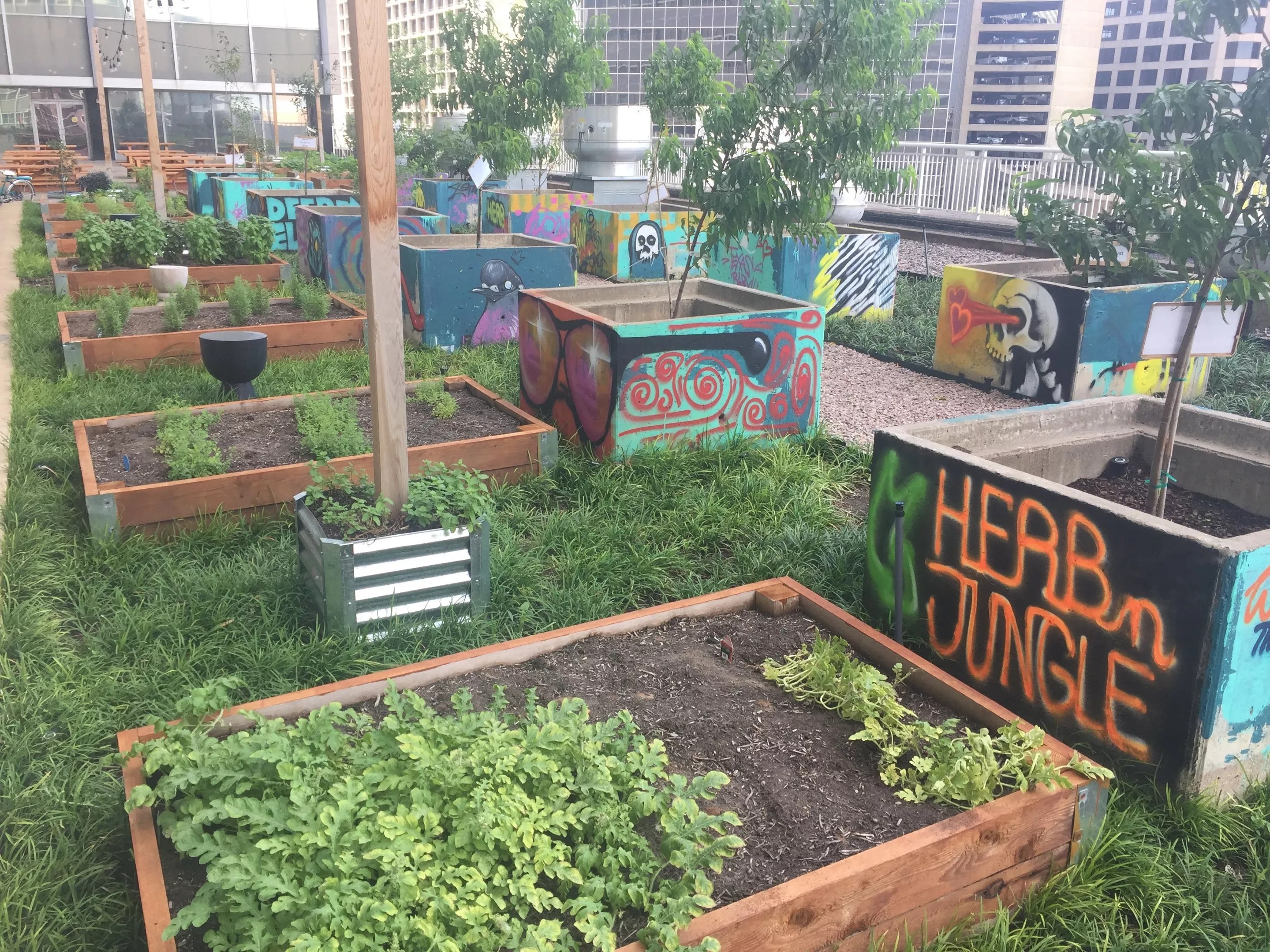 A desolate downtown rooftop has blossomed into a sprawling urban garden.