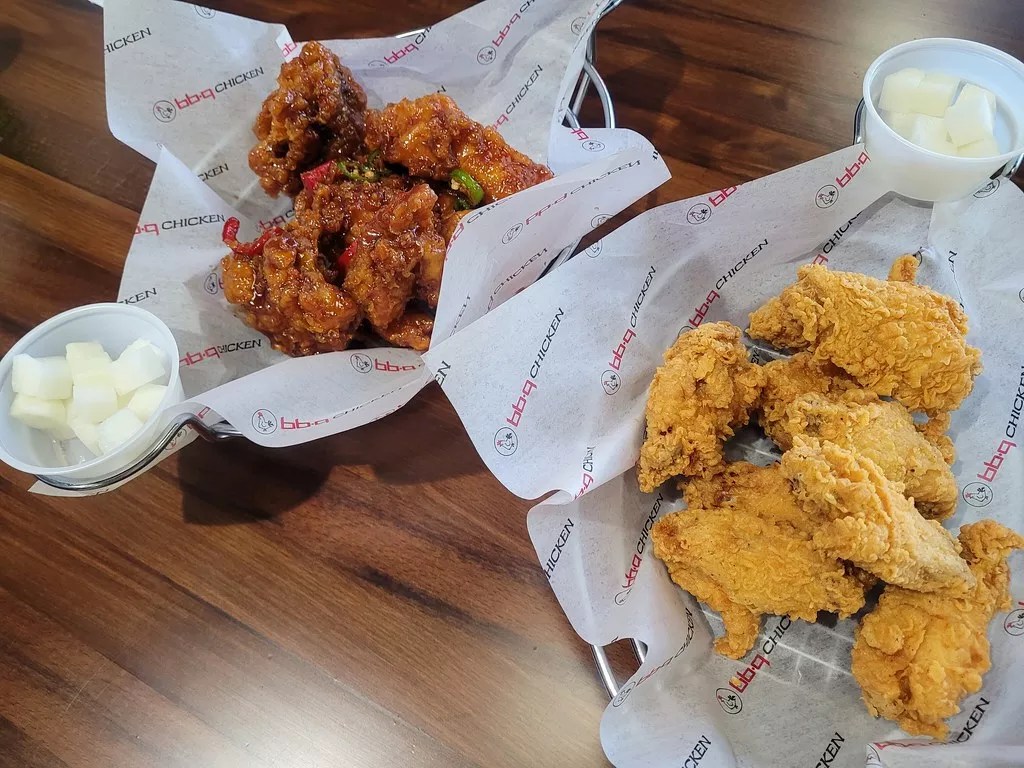 Bb.q Chicken (1827 SW Green Oaks Blvd., Arlington) serves its double-fried chicken in variations: cut-up whole chickens, wings, even boneless strips or just fried or dressed in sticky dressing that never makes the breading soggy. Bring friends to share over local beers or a bottle of Soju, Korean liquor. Then choose two to three of many flavors that range from the original golden olive to sweet and savory soy garlic to mild-spiced Gang Jeong to four-chili rated Wings of Fire.