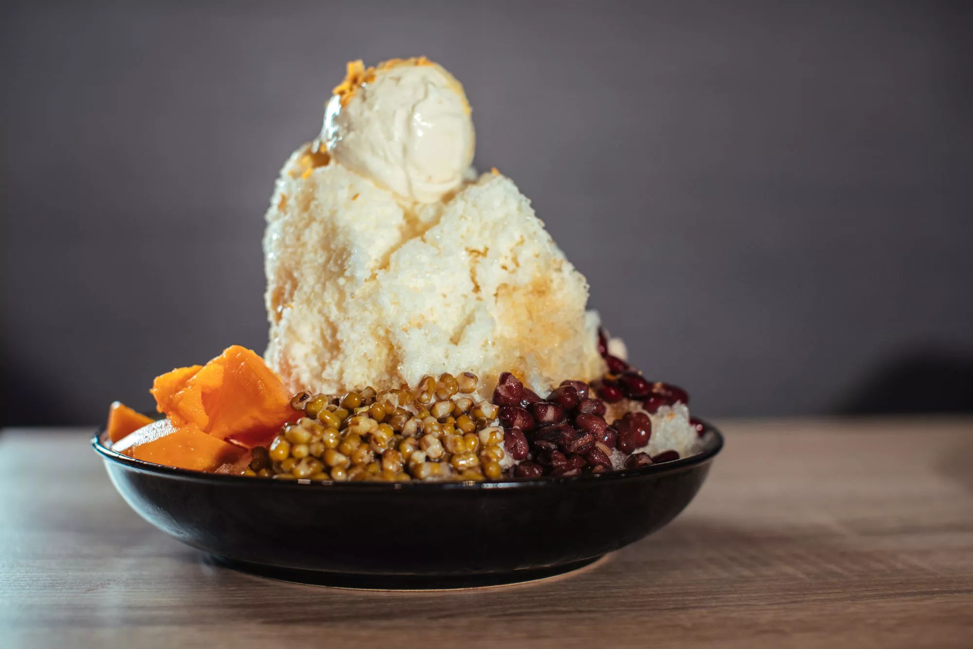 Shaved ice with sweet potatoes, beans, condensed milk and ice cream at Meet Fresh.