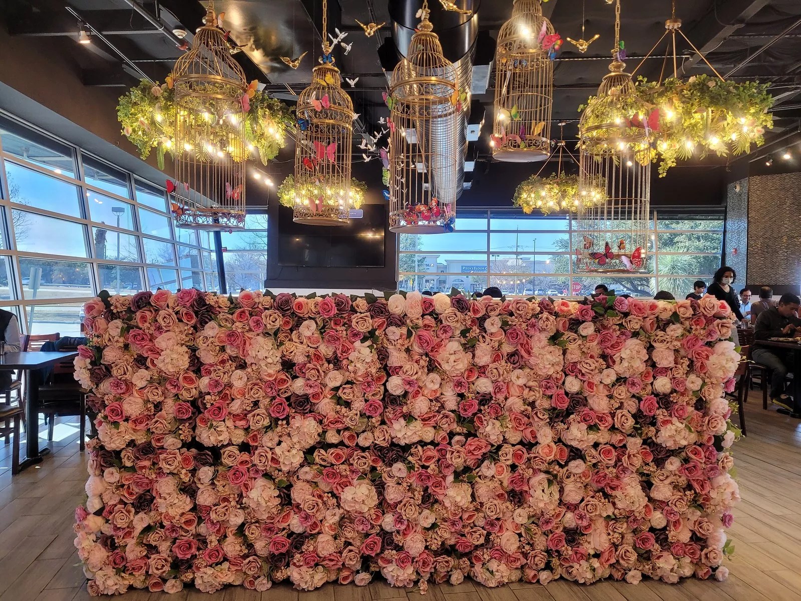 As you enter the restaurant Vrindavan in Frisco, you know it is indeed a special place. Pink and white garlands cascade from the ceiling, a wall of roses in every shade of pink separates the lobby from the dining area, butterflies float in gilded cages and golden chandeliers entwined with vines and ferns dangle overhead.