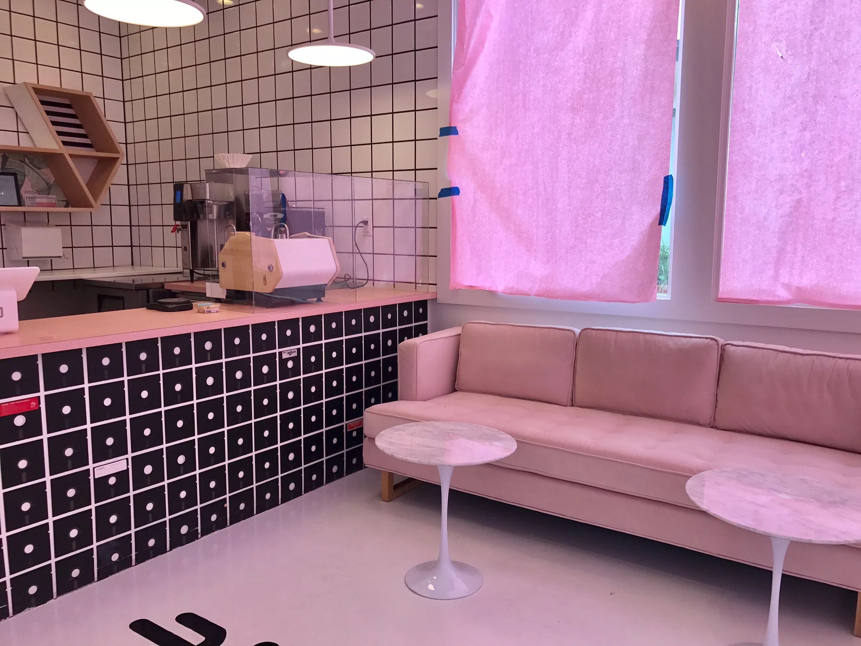 On a sleepy stretch of Plowman Avenue in Oak Cliff, a pink-accented anomaly that recently popped up has neighbors scratching their heads. “New coffee shop, who dis?” stickers on the front read. A tiny window in the door is labeled “peep show,” allowing curious people to peek inside at what will soon become Internet Cafe 2.