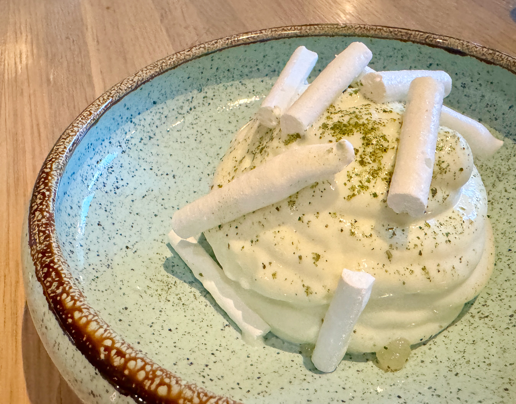 All of this is finished off with a pavlova-like dessert that includes kefir lime caviar and lemongrass sorbet. It’s a light, bright finishing touch.
