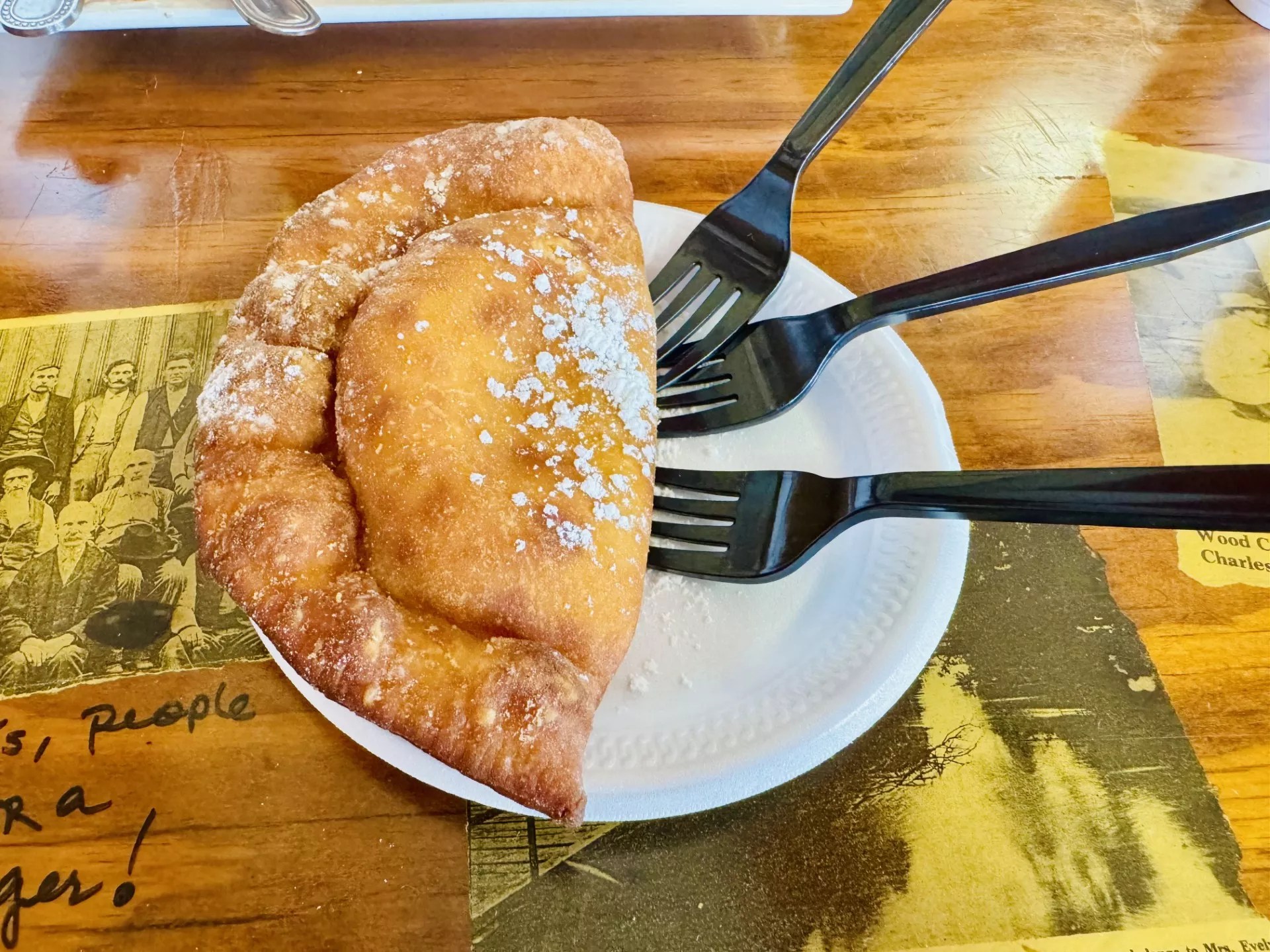 For dessert, we divvied up an apple fried pie. Fried pies are big around these parts, and in recent years, we’re learning why (because they’re good, that’s why).