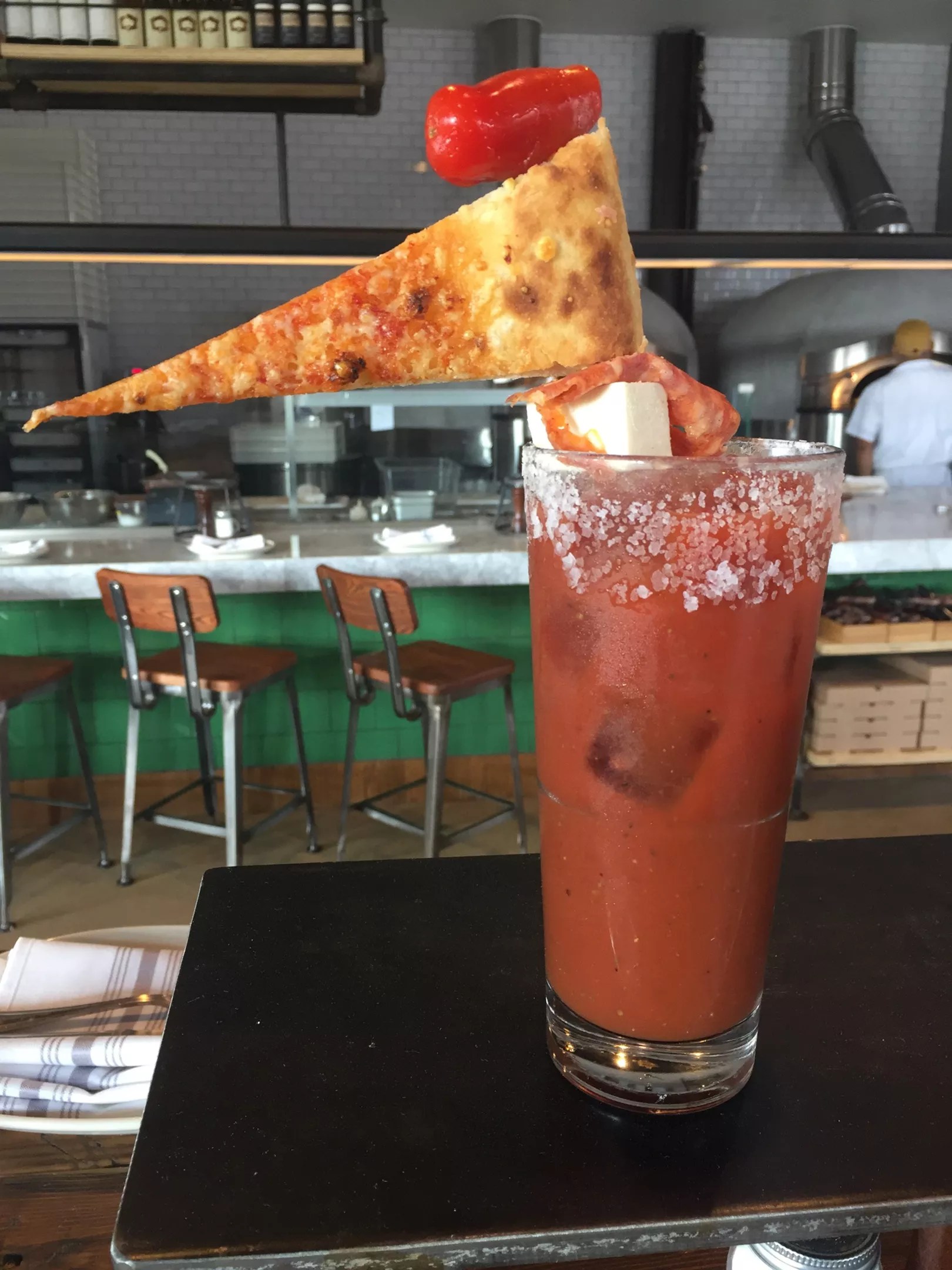 The menu features drinks from their signature Frozen Ripsaw to classic cocktails like a Sazerac, all made well and priced reasonably. Their bloody mary seems pretty standard until you get an eyeful of the garnish, which includes a full slice of cheese pizza. There’s a damn slice of pizza on the drink, y’all. The bloody itself is surprisingly peppery thanks to the house-infused peppered vodka.