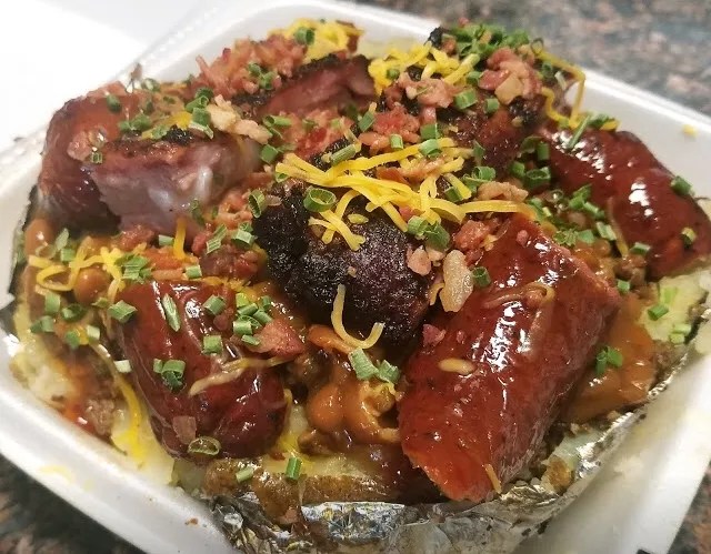 Smokey D’Z bestseller is the loaded potatoes filled with meat and all the baked potato fixings. The loaded fries, an item you don’t see on many homestyle barbecue menus, are also drool-inducing. Go Tuesdays for smoked turkey, and don’t forget to try a sandwich, too.