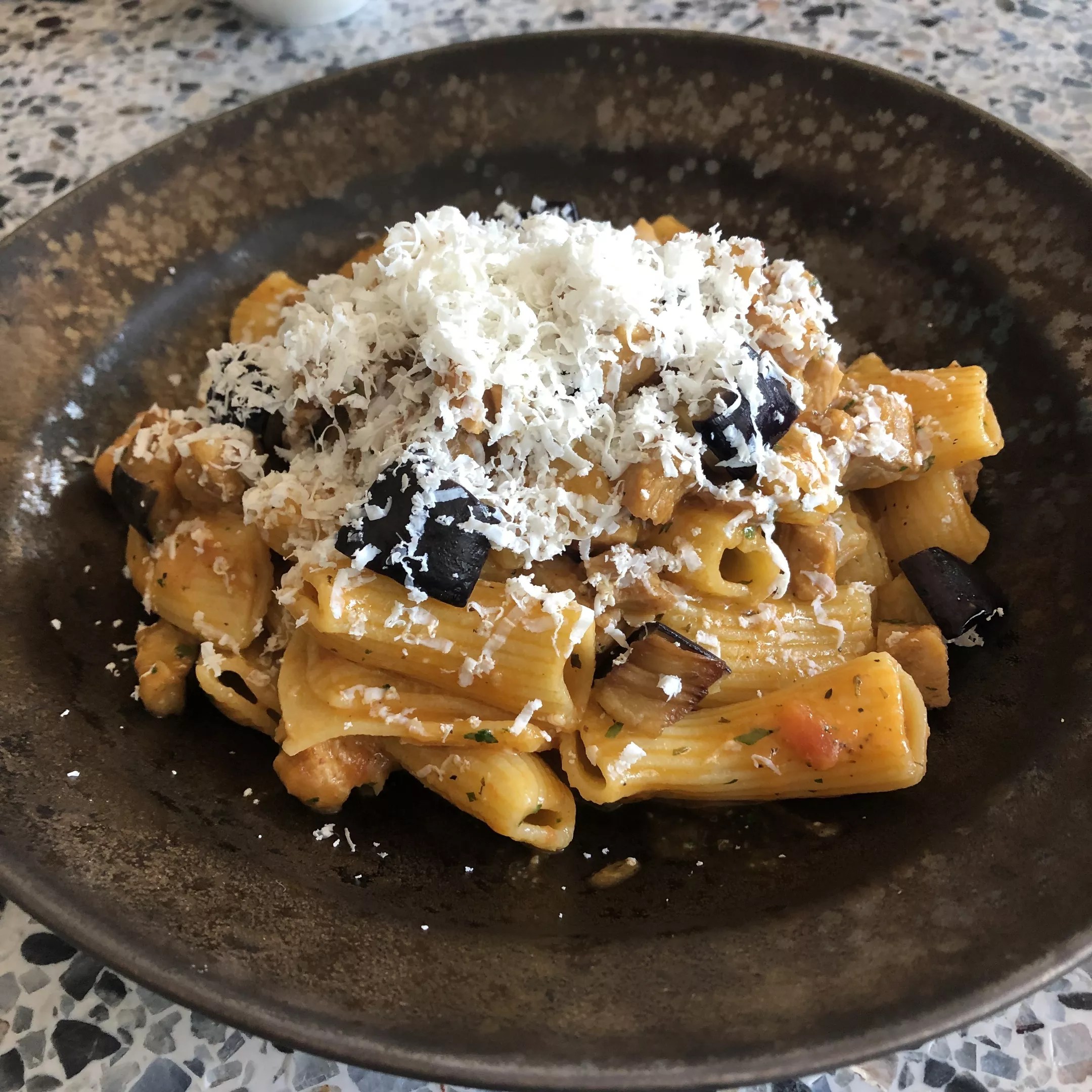 The menu boasts several pizzas and pastas, however, one must try the rigatoni con ragu di maiale, a plate of housemade rigatoni noodles coated with a lamb ragu and finished with cuts of eggplant and salted ricotta ($19).
