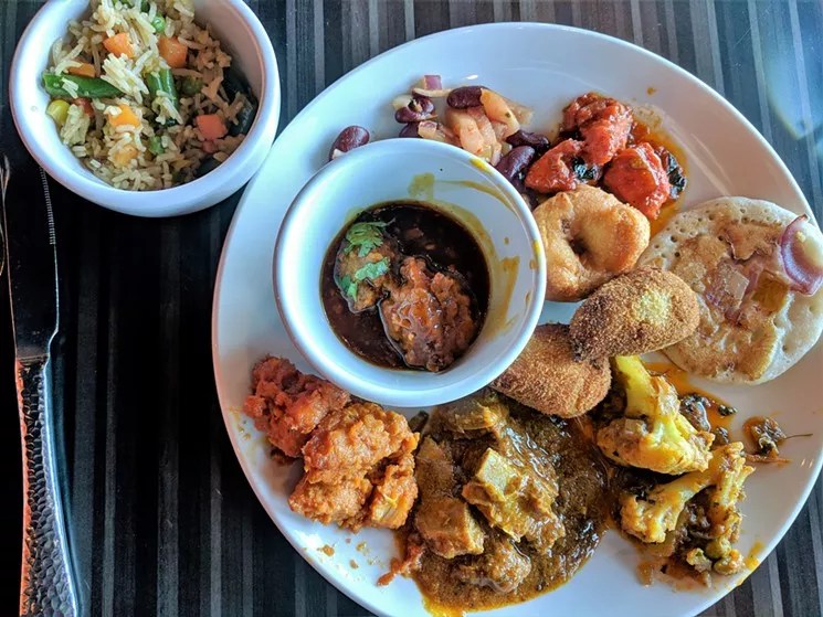 This posh (well, for a buffet, anyway) Irving buffet is filled with flavorful Indian dishes such as Tandoori chicken, vegetable uttapam, vada (Indian fried doughnut), aloo gobi, chicken 65, goat curry and samosas.