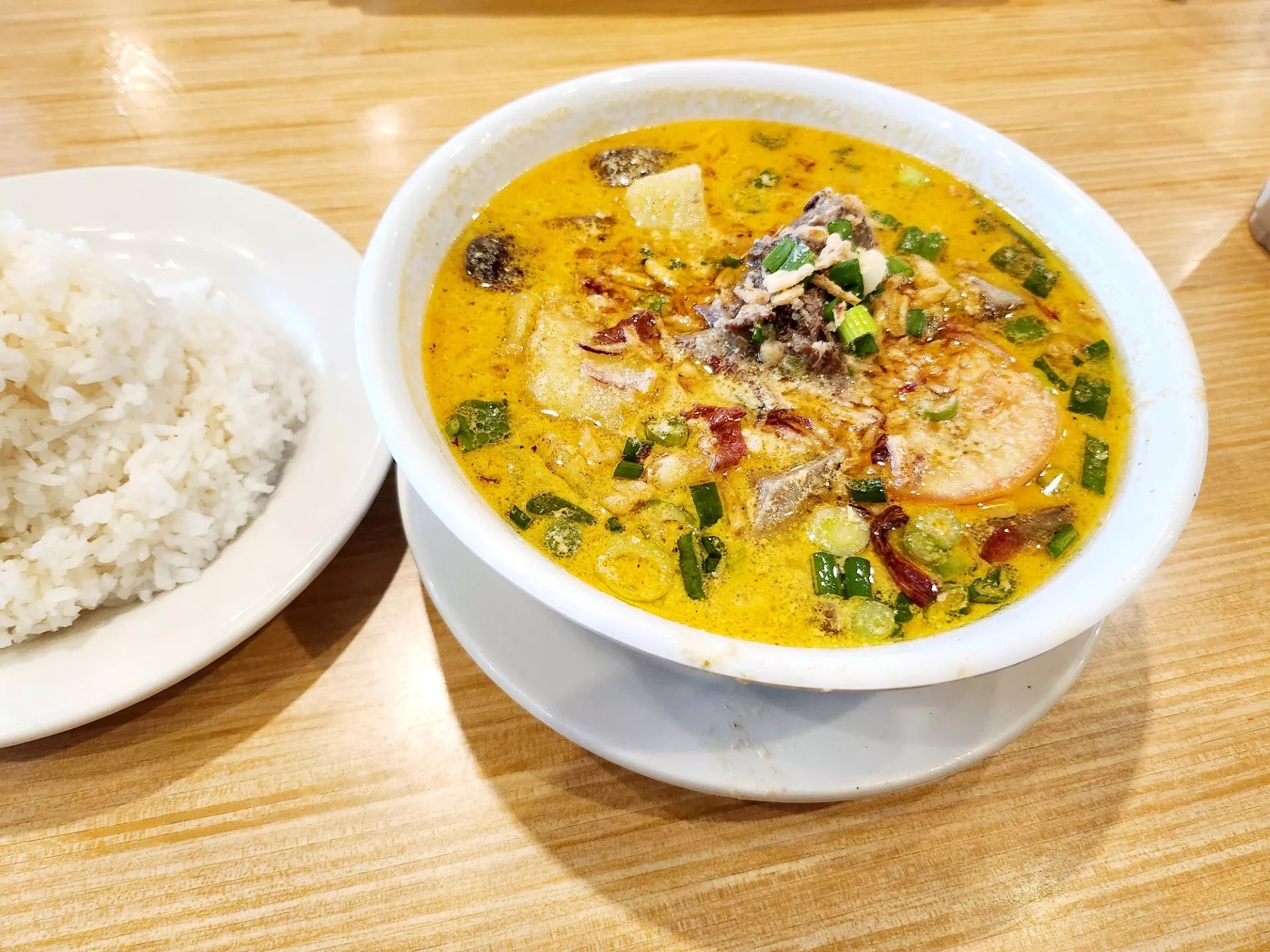 Soto betawi with braised beef tongue, potato, and tomato in a creamy lemongrass and coconut milk broth.