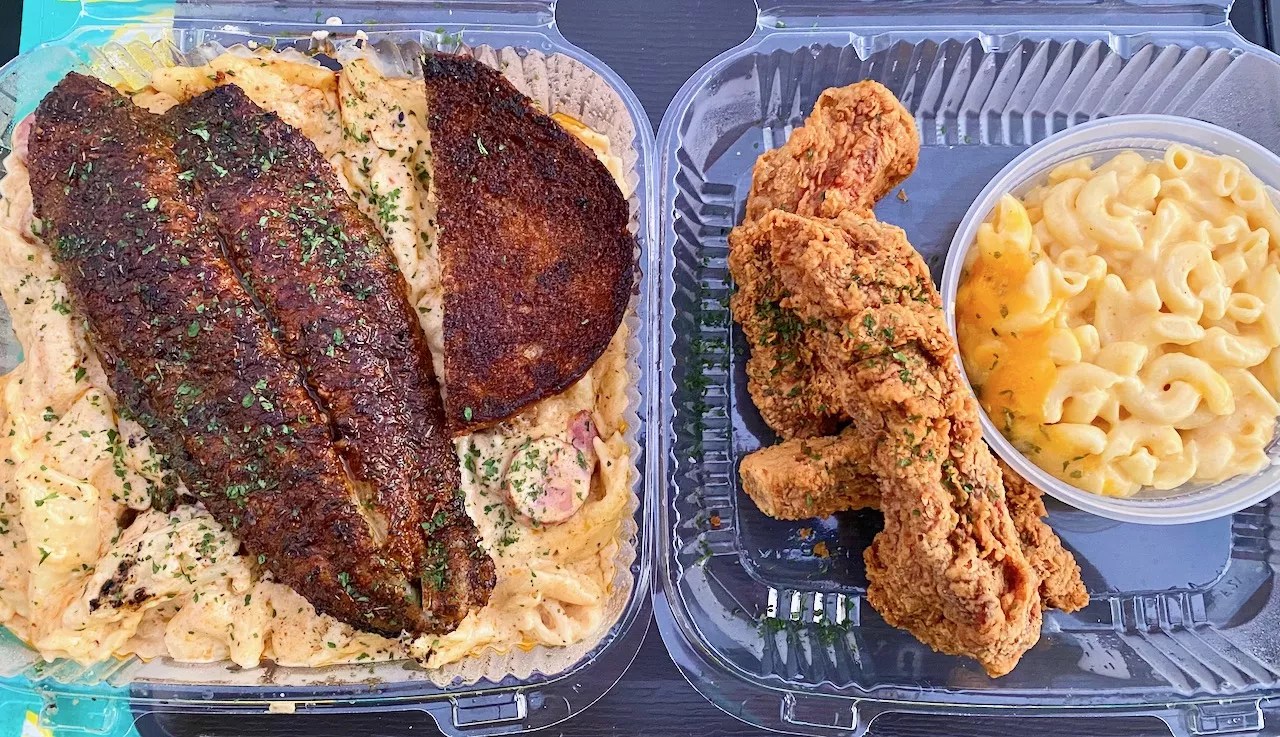 The owners behind Bells Sweet Factory are Thaddeus Bell and Ashley Johnson, both New Orleans natives who moved to Texas three years ago. They had a rough start upon arriving in the Lone Star State, experiencing financial hardships and homelessness. After initially trying to open a sweet shop (hence the name The Bells Sweet Factory), they eventually turned to Bell’s love for cooking and started selling to-go plates out of their car.