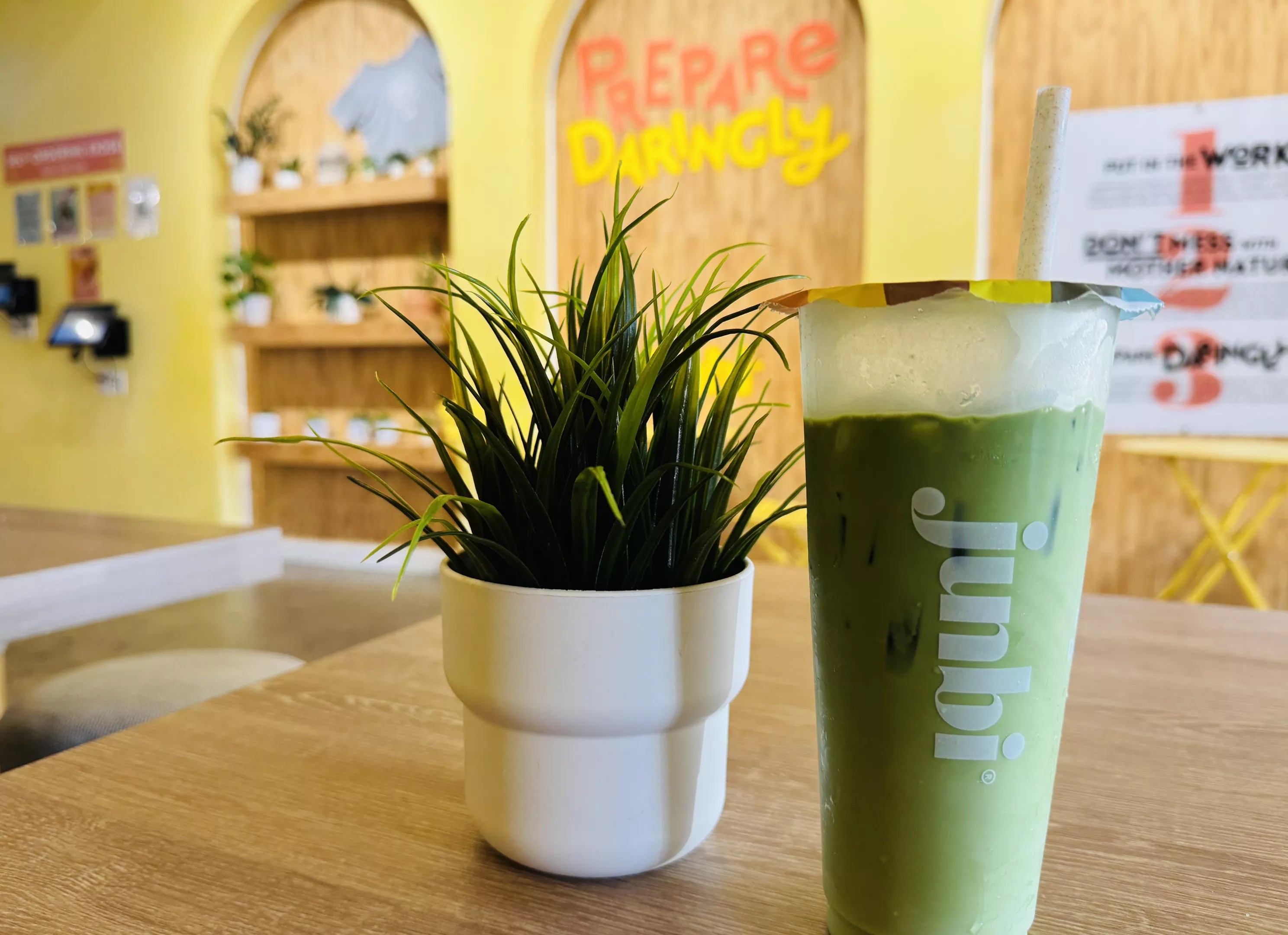 Earl Grey matcha with fresh coconut milk at Matcha Republic-a bold brew-meets-bodega vibe.